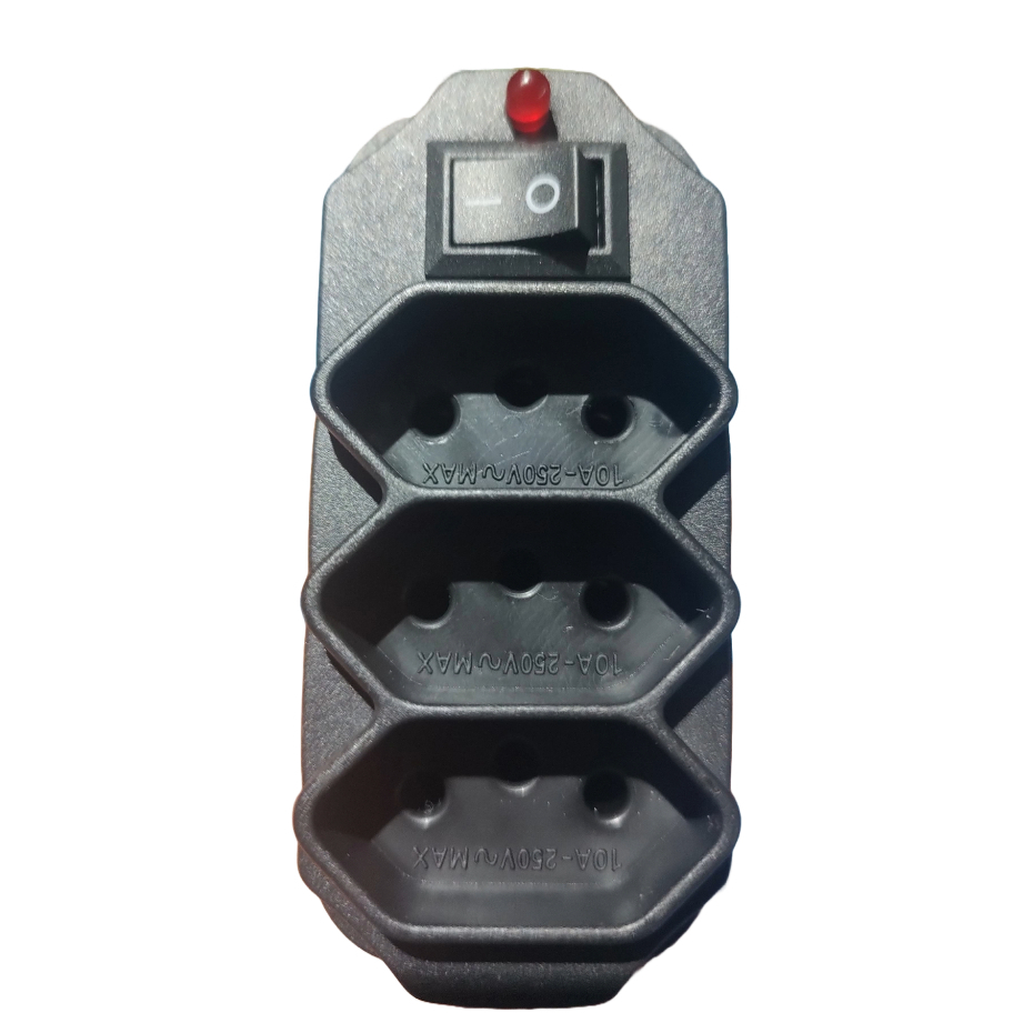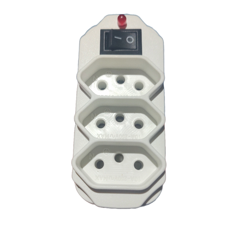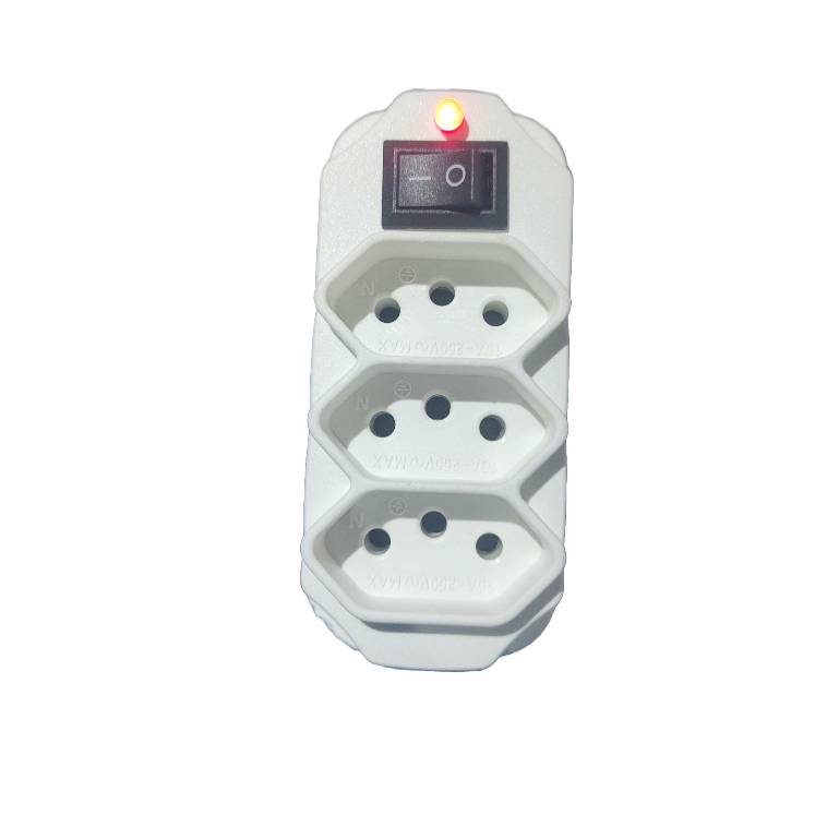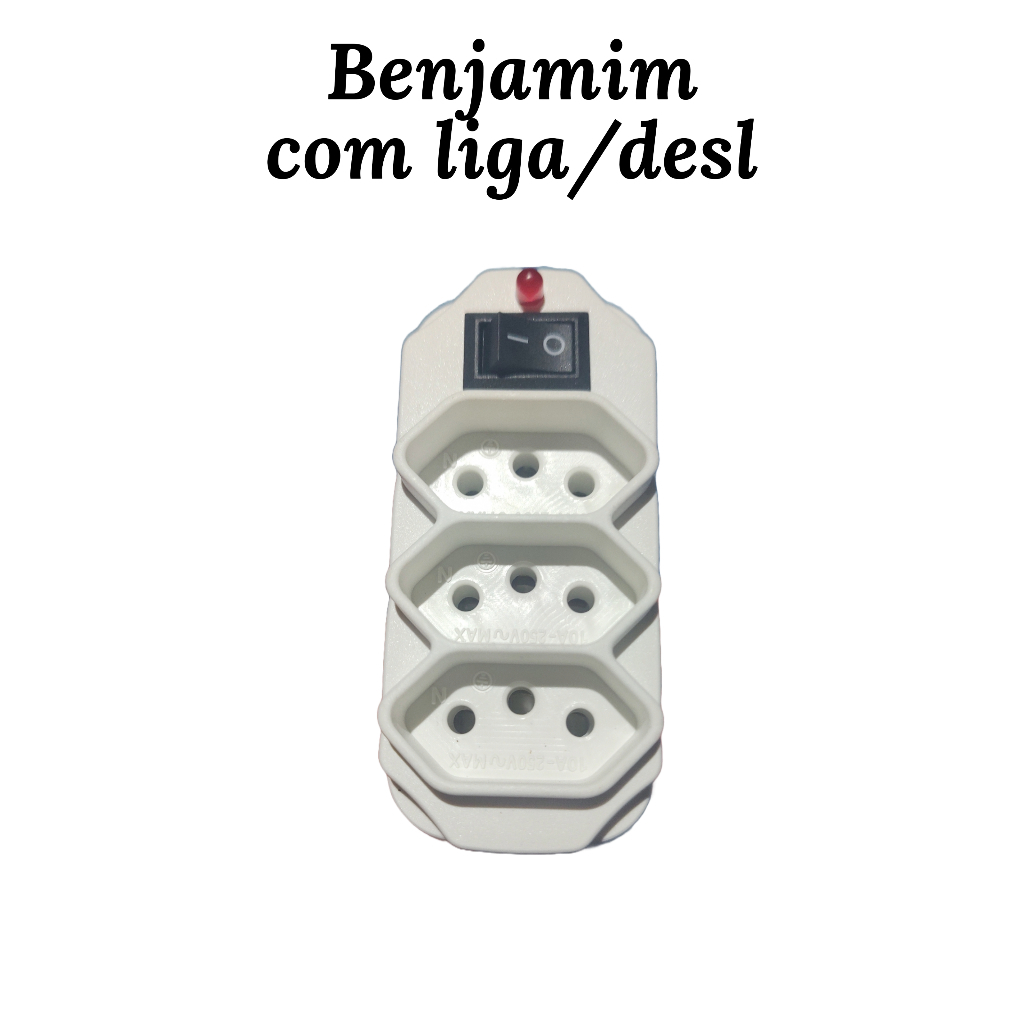 Benjamim Adaptador branco tomada triplo com Interruptor Liga/Desliga 3 ENTRADAS A10 ~250V INMETRO