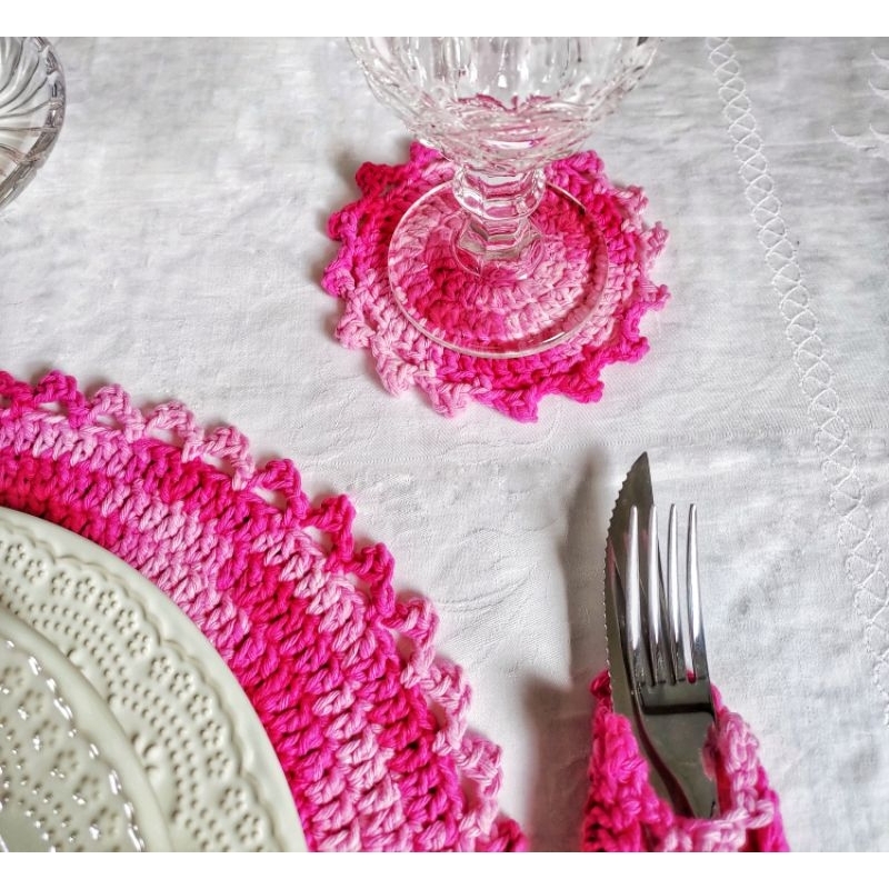 Porta copo Mesclado 13cm em crochê para mesa posta