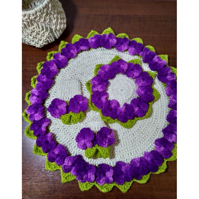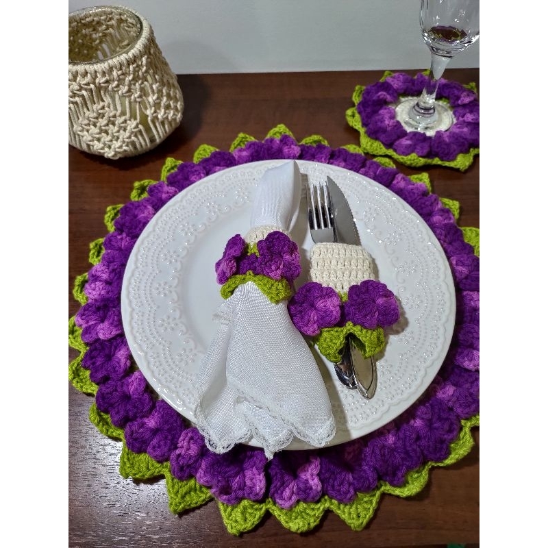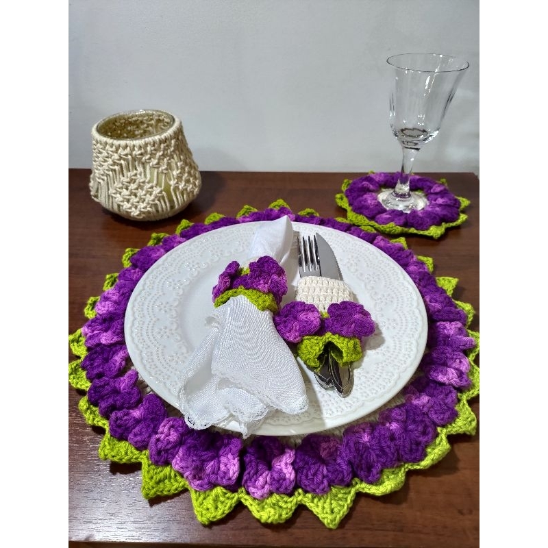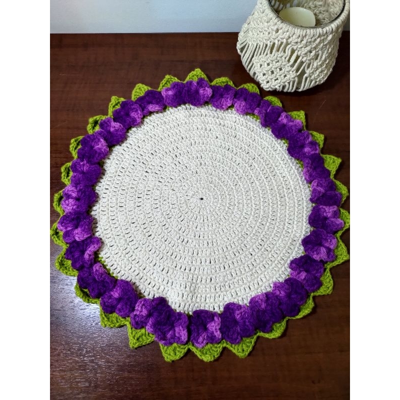 Sousplat Flor do Campo 38cm em crochê para mesa posta