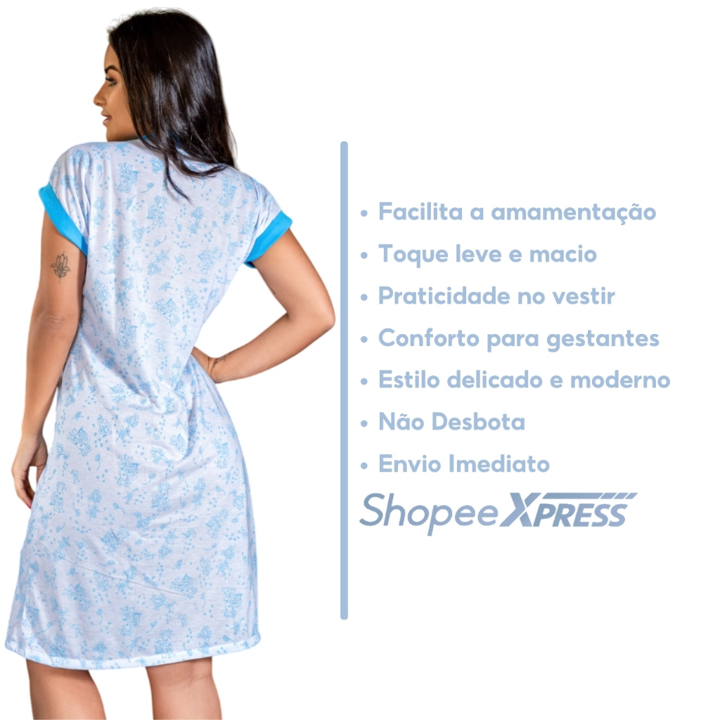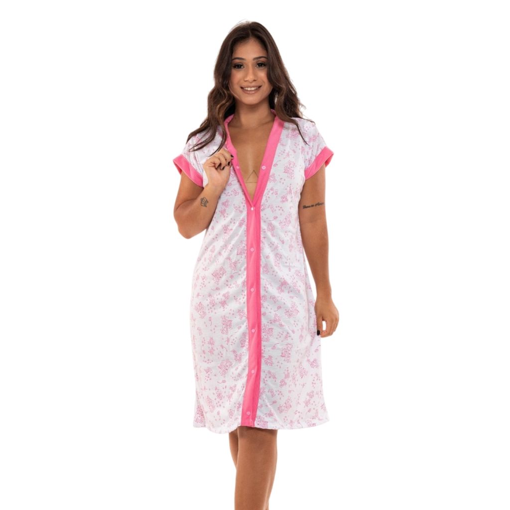 Camisola Maternidade Amamentação Gestante Senhora Abertura Frontal Estampada Donna Joli