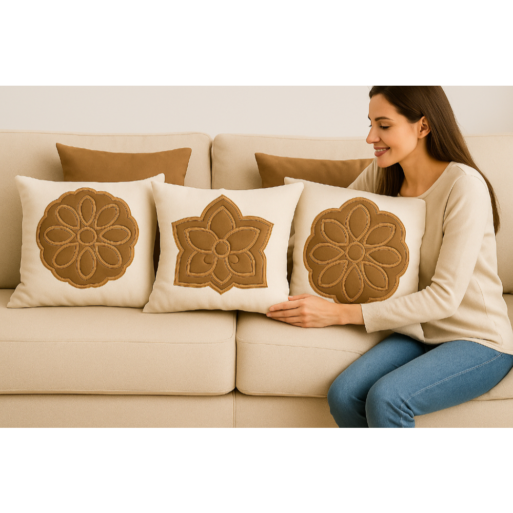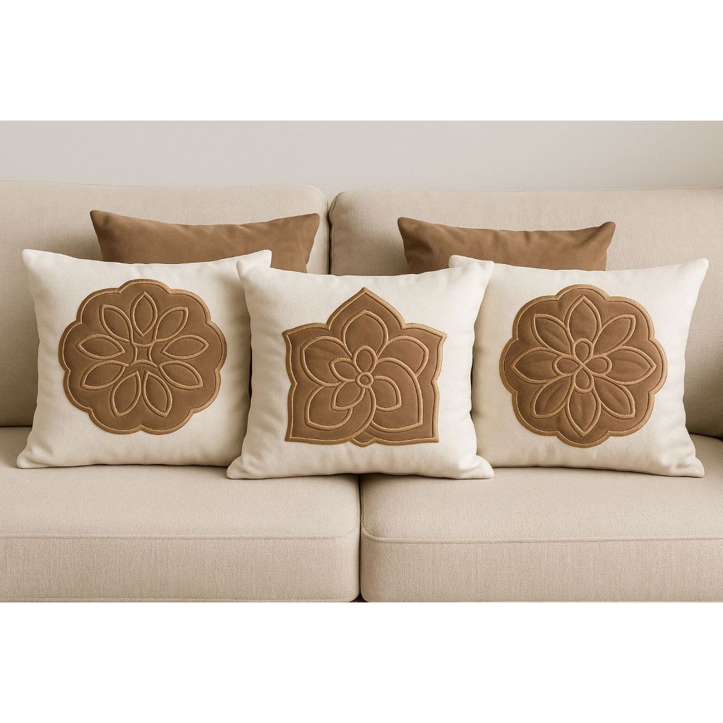 KIT 5 ALMOFADAS DECORATIVAS LUXO | 3 BORDADAS EM BOUCLÉ + 2 LISAS EM SUEDE | COM OU SEM ENCHIMENTO | 45x45