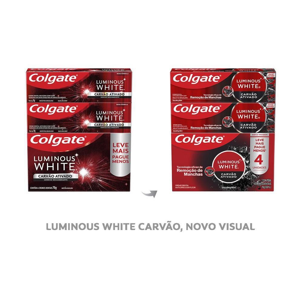Creme Dental Colgate Luminous White Carvão Ativado 4un de 70g