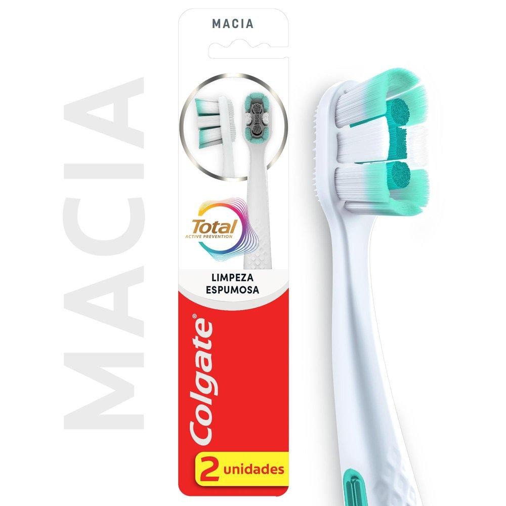 Kit 2 Escova Dental Colgate Total Limpeza Espumosa Suave 2 unidades