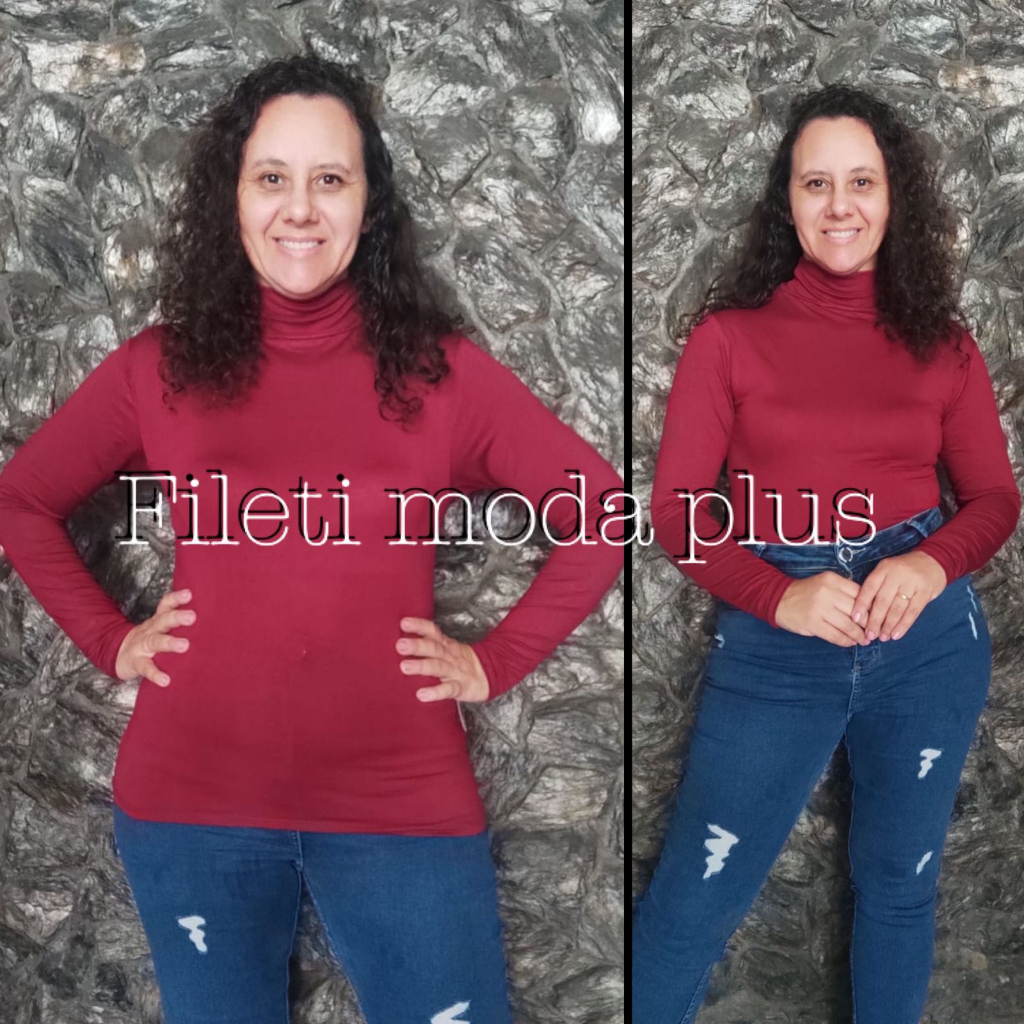 Blusa De Gola Alta Plus Size, Cacharrel Manga Comprida Segunda Pele
