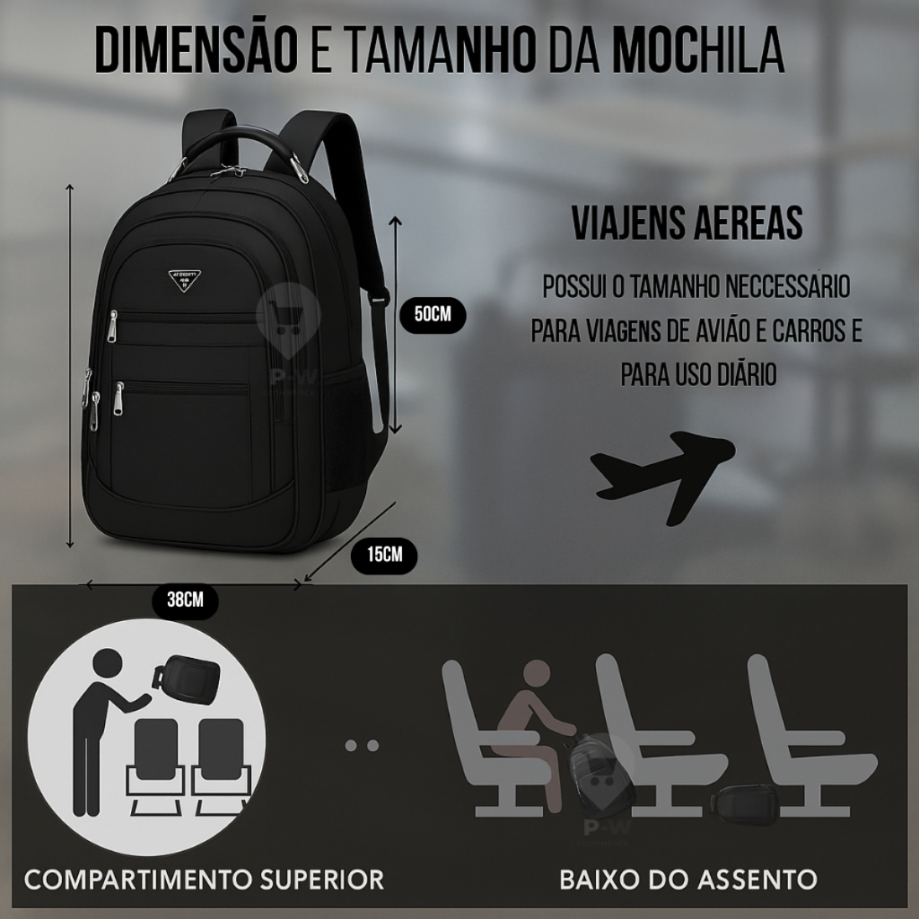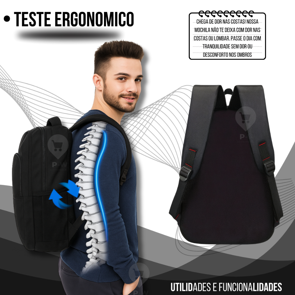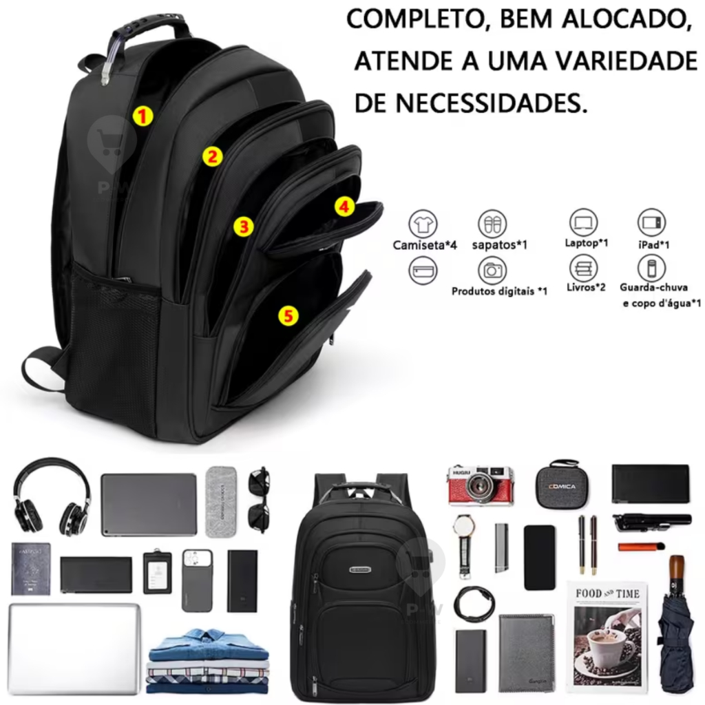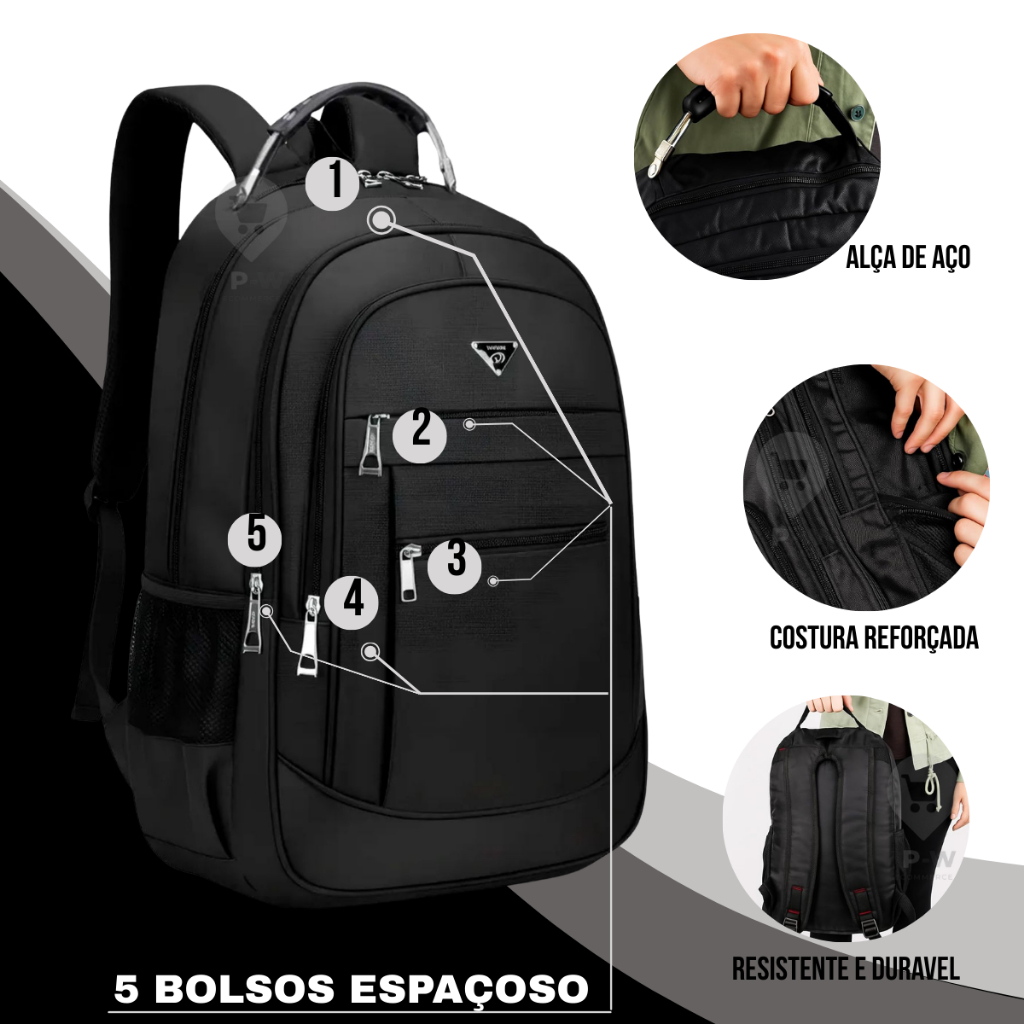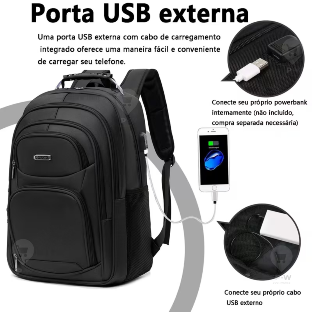 Mochila Masculina Grande Reforçada Cabo De Aço Notebook USB