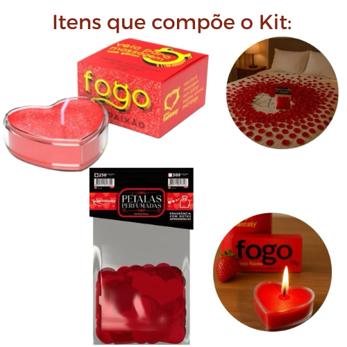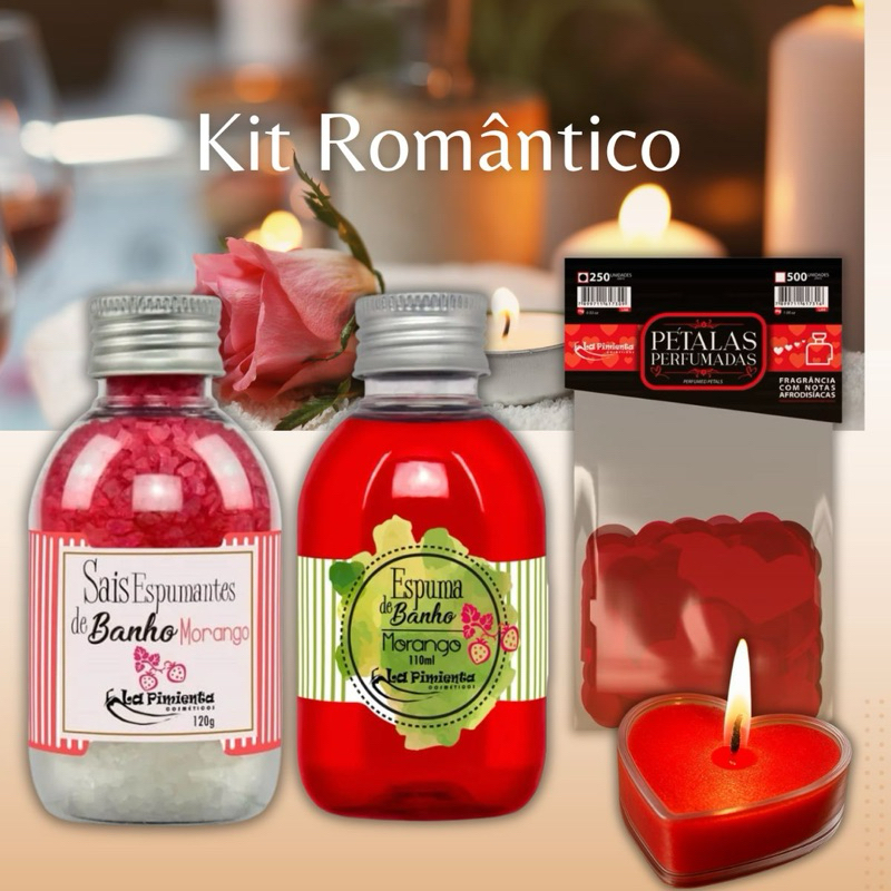 Kit SPA Romântico Espuma de Banho + Sais de Banho + Vela Arômatica + Pétalas Formato Coração 250 UN