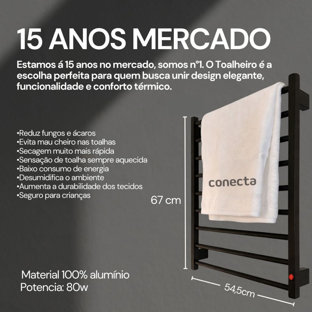 Toalheiro Elétrico Térmico Em Alumínio Aquecido Grande Para Toalhas, Preto, Branco e Prata economia casa banheiro