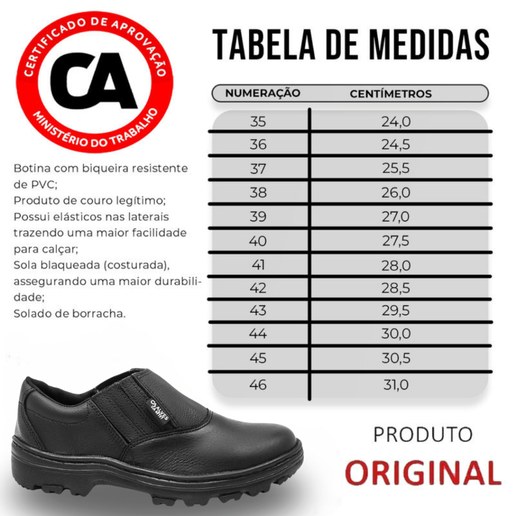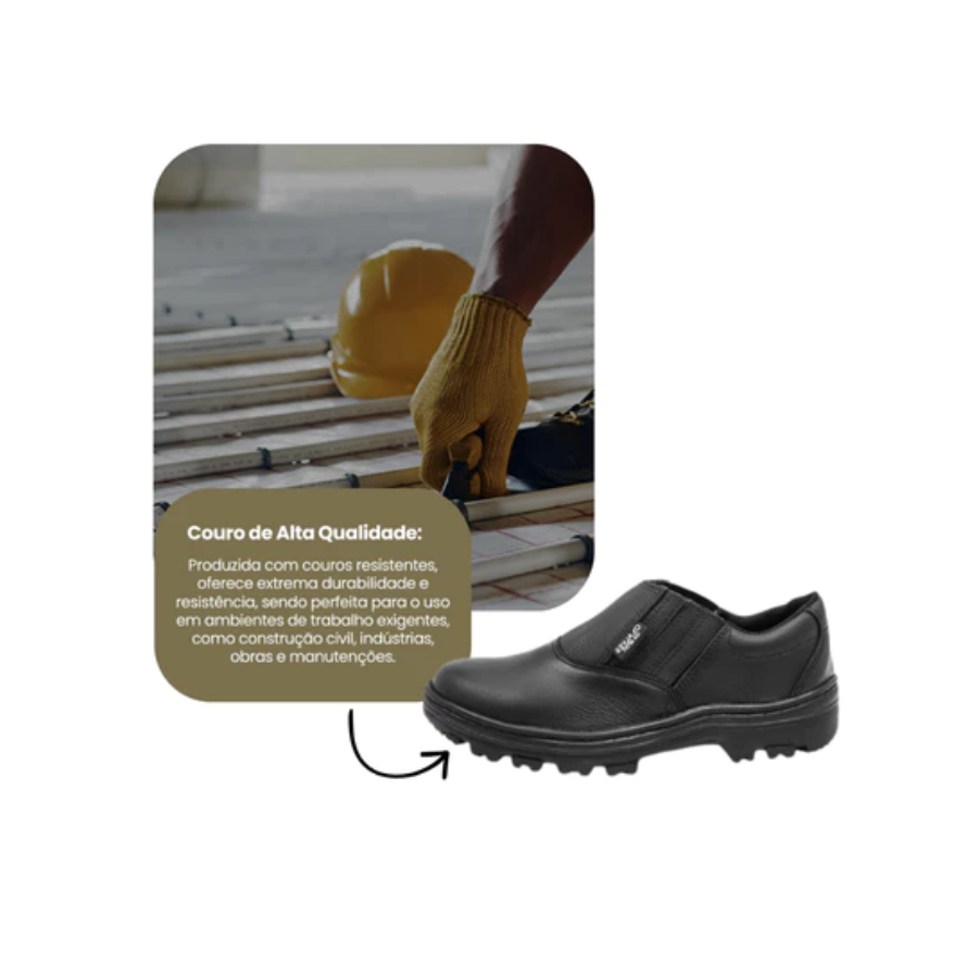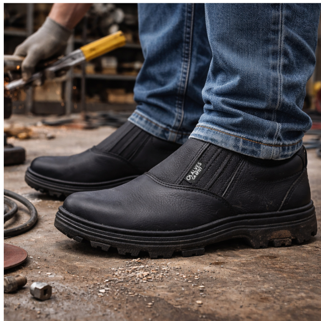 Bota Botina de Couro Masculina de Segurança EPI Confortável Sola de Borracha e Bico PVC Envio Rápido