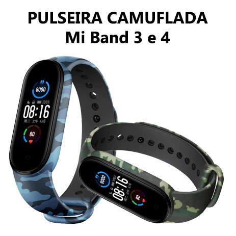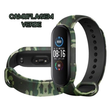 Pulseira Camuflada Xiaomi Mi Band 3, 4, 5 e Miband 6 Pixel Silicone Militar Exército - Ótima Qualidade