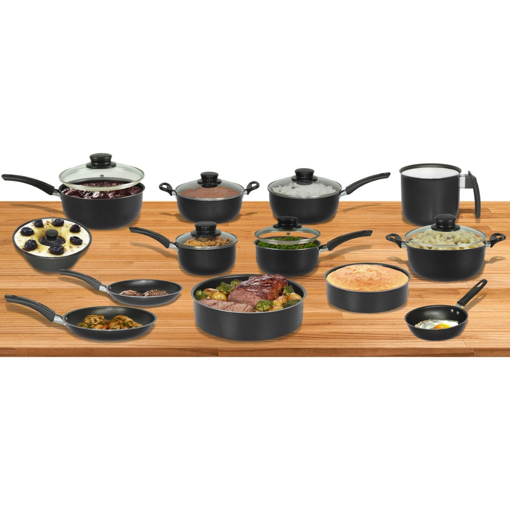 Jogo de Panelas 13 Peças Teflon Antiaderente Com Tampa de Vidro