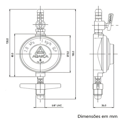 Regulador Registro Para Gás 504/01 Mangueira 1,20m Aliança