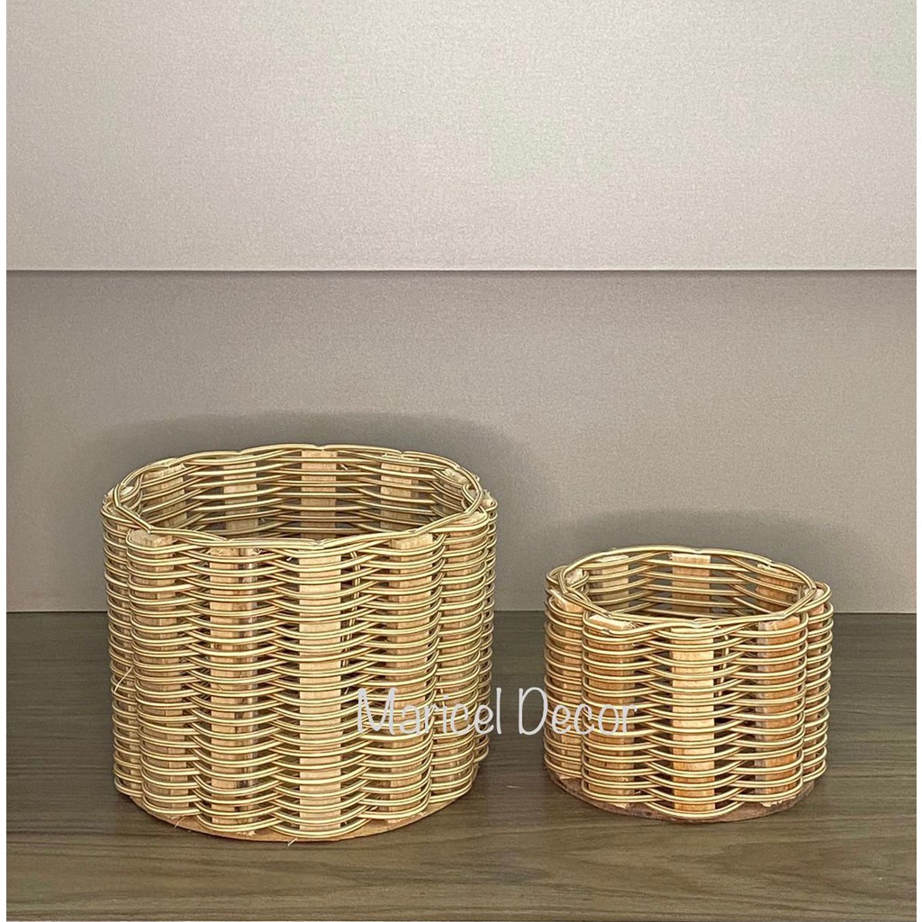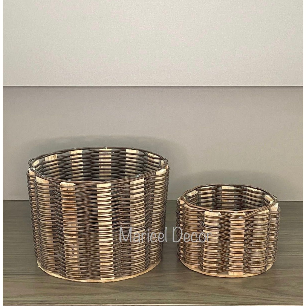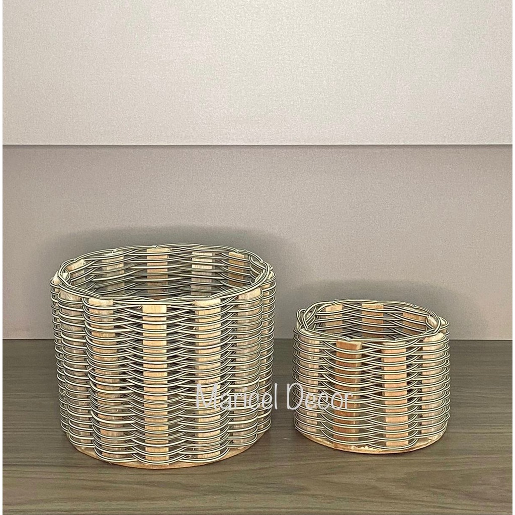 kit 2pçs Vaso Cachepô 20x15cm e 11x11cm Crisântemo e Violeta Redonda de Fio