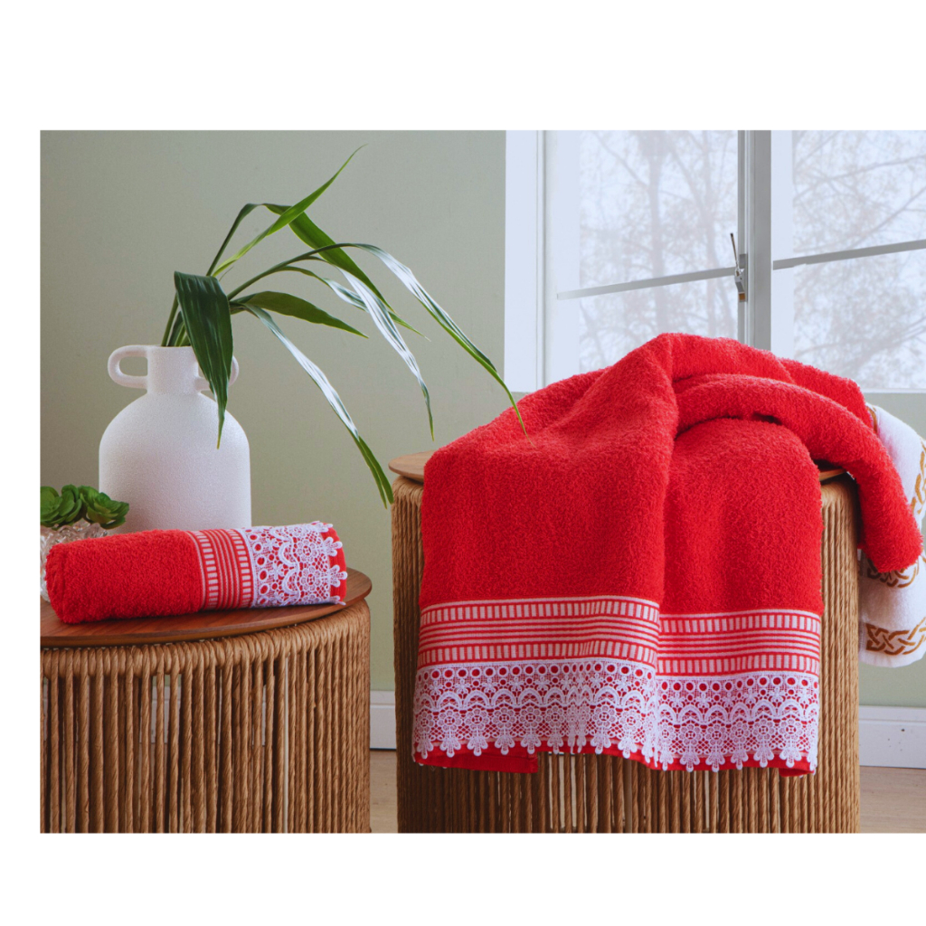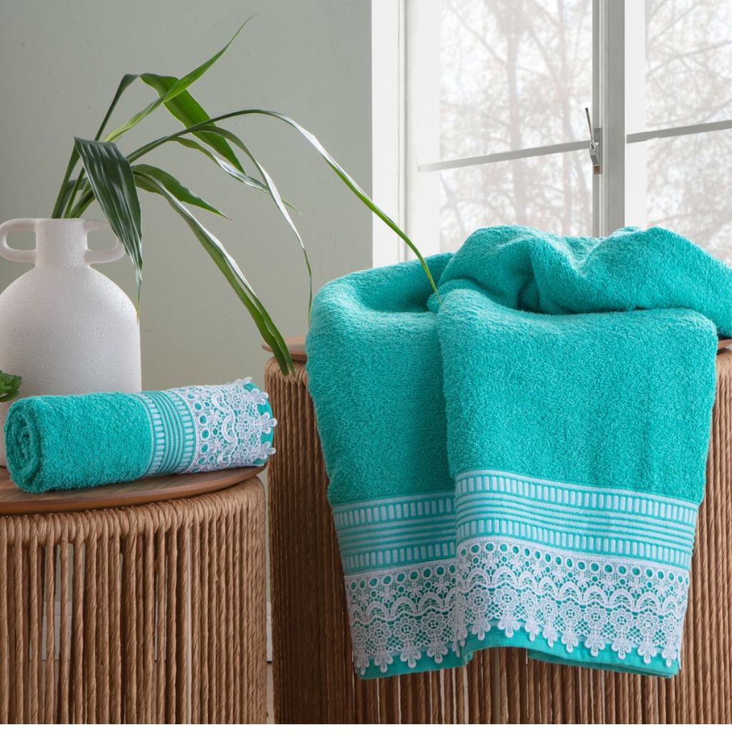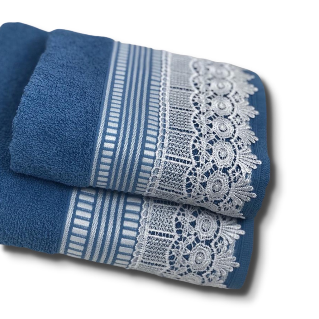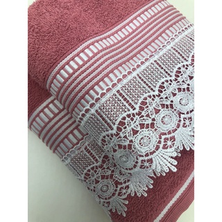 Jogo 2 Peças Toalha Banho e Rosto Ouro Gigante Com Renda Guipir 500 gr CL.