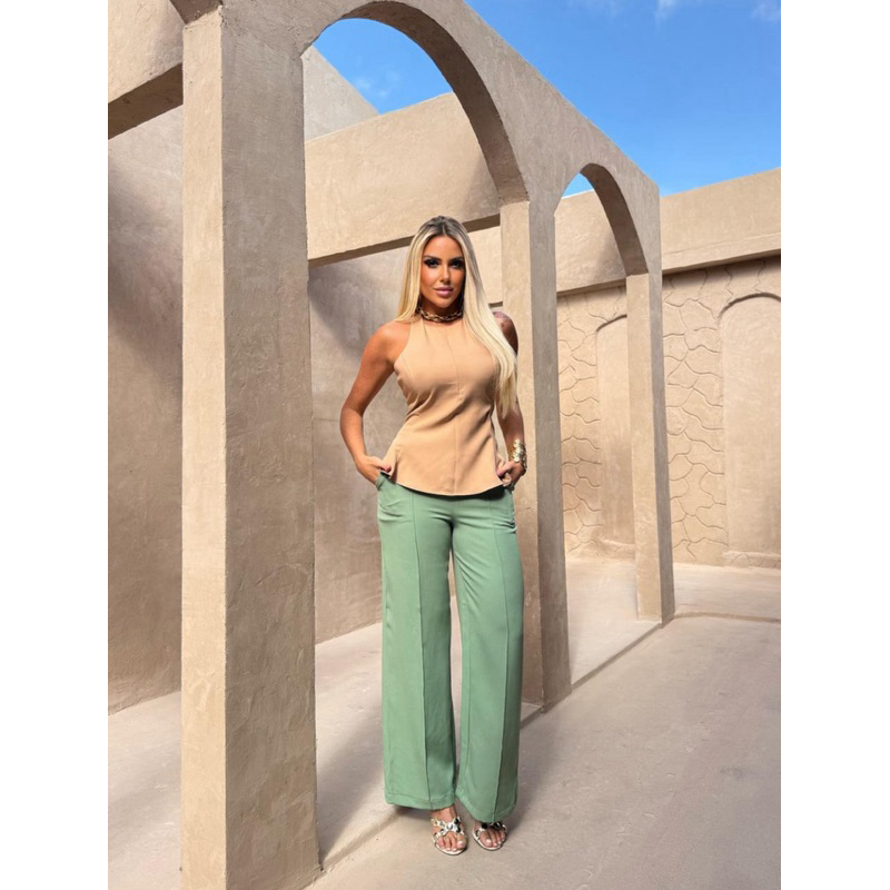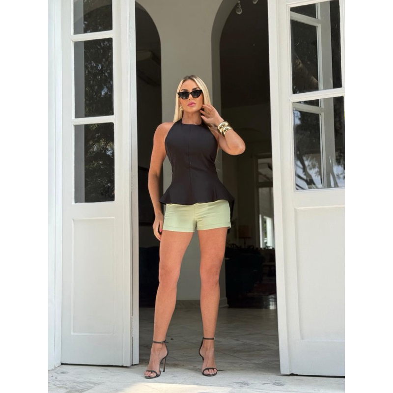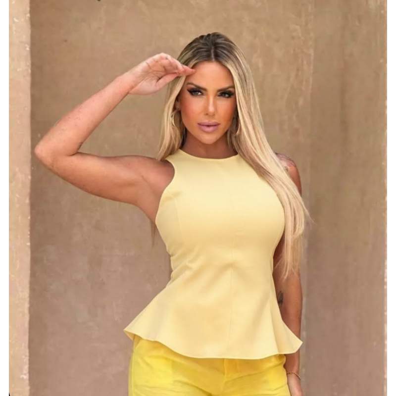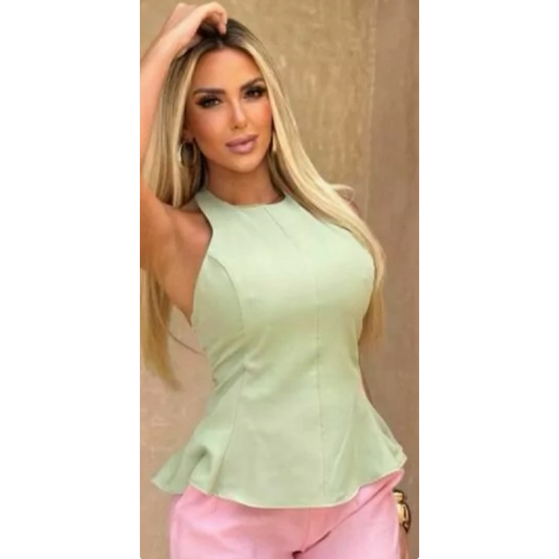 Blusa Regata Social Feminina Alfaiataria Gola Alta