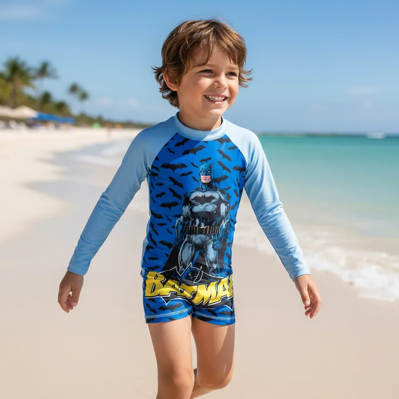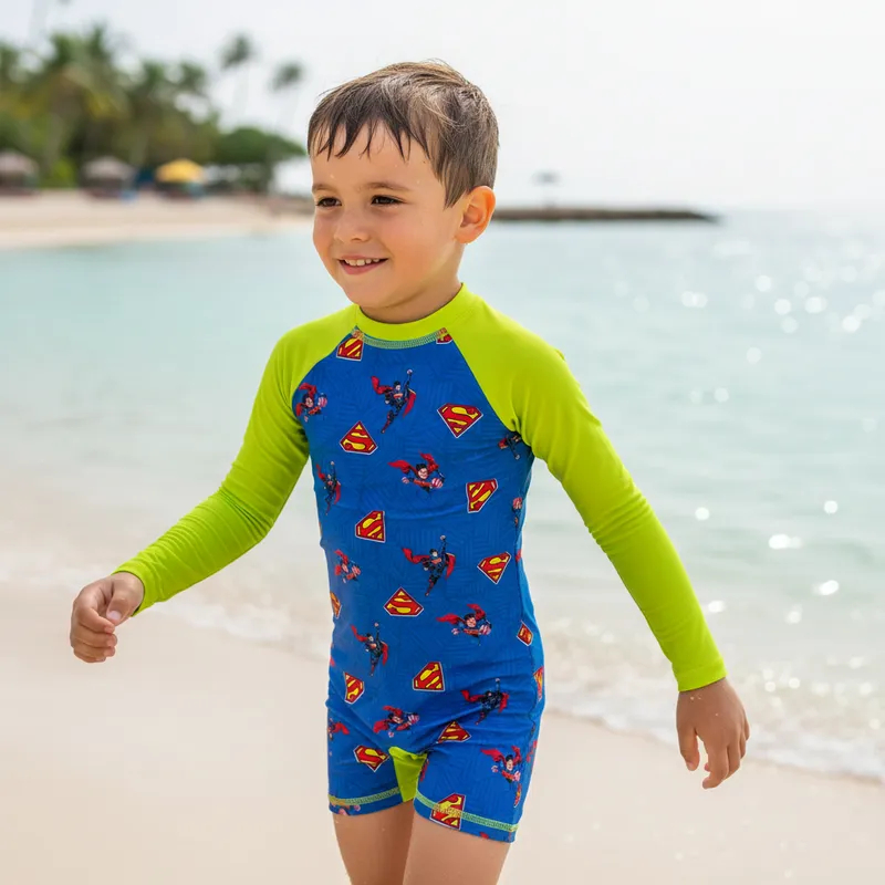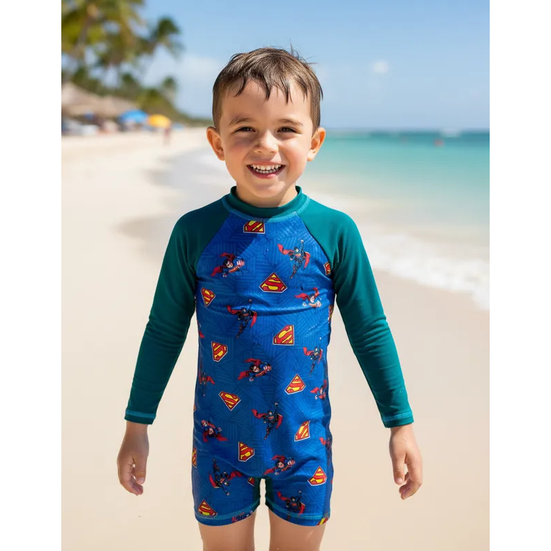 Macaquinho Shorts Natação Infantil Menino Macacão Zíper UV50 Praia Piscina