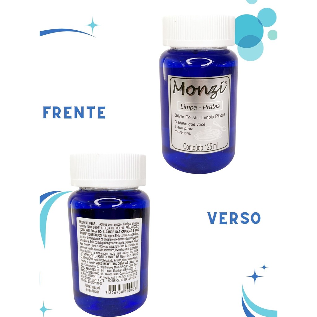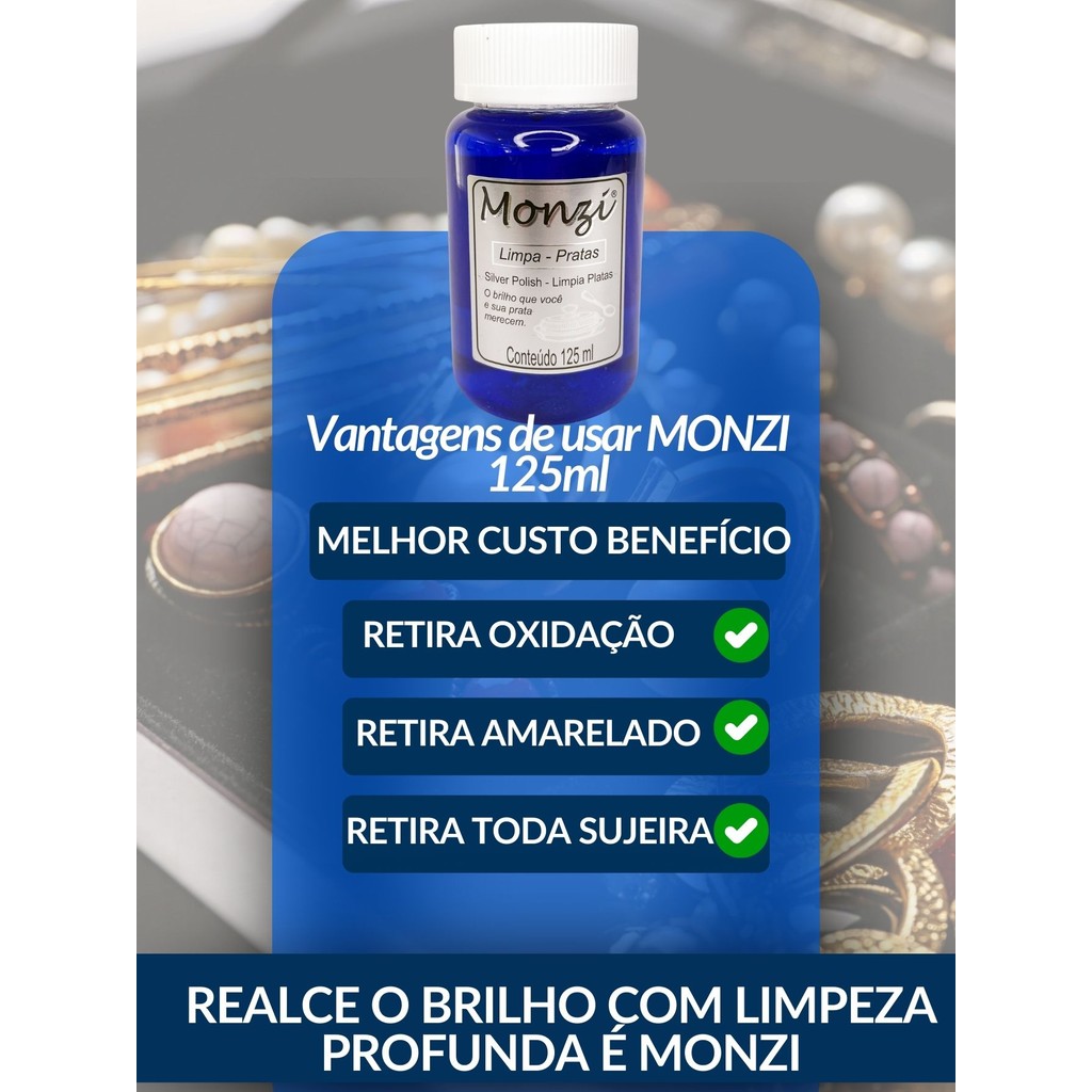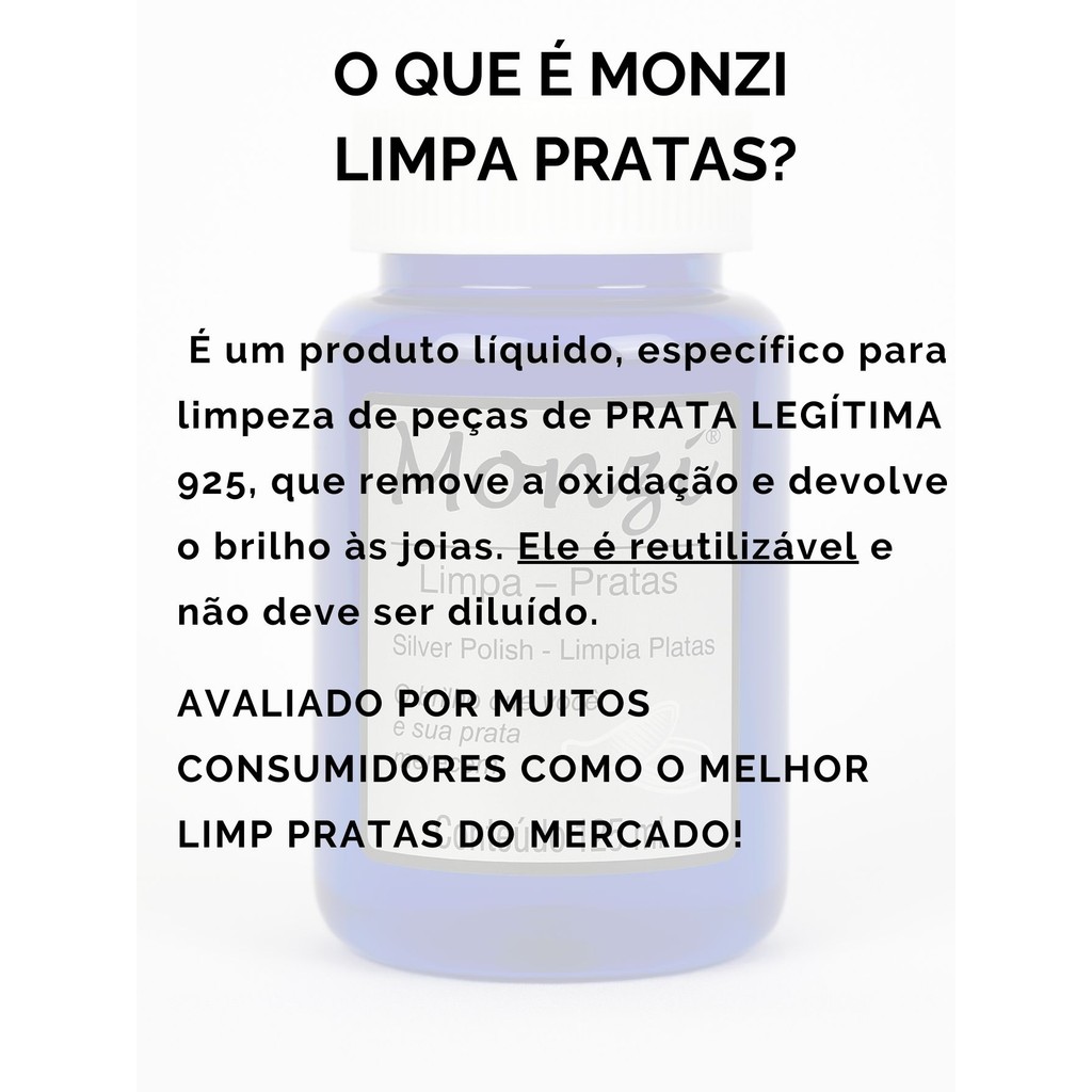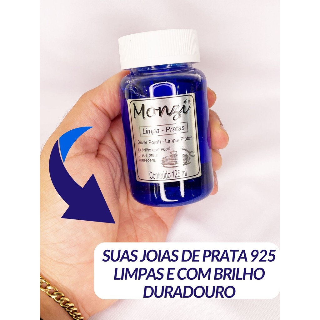 Limpa Prata 925 Monzi 125ml Original Liquido Limpeza Jóia Corrente Anel Restaura Brilho Grande