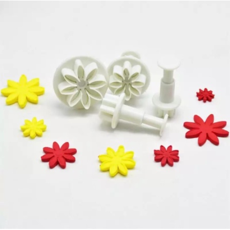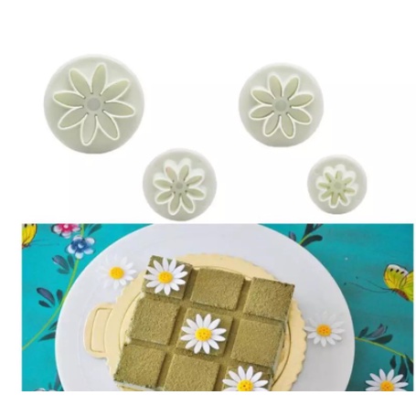 Kit De 4 Cortadores Com Ejetor Formato De Flor Para Biscuits E Massas Em Geral Confeitarias E Cozinhas