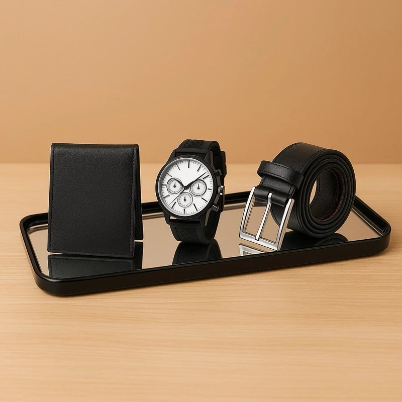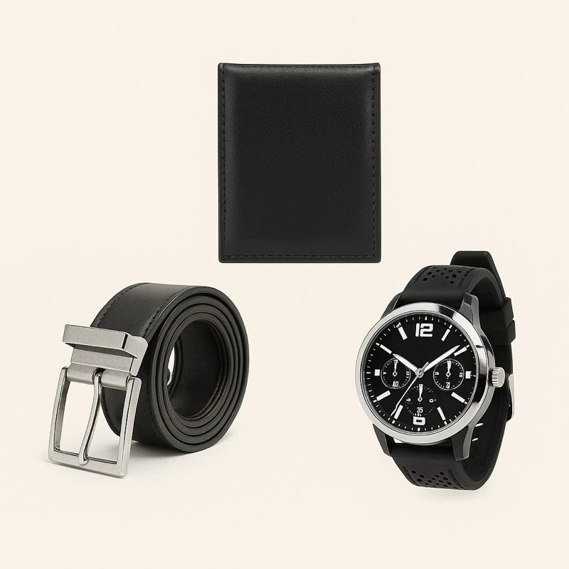 Kit Masculino Relógio + Carteira + Cinto Elegante Presente Completo