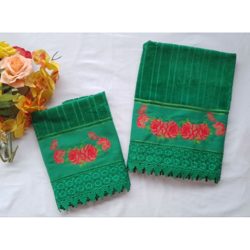 jogo de toalha de banho bordado cor verde escuro