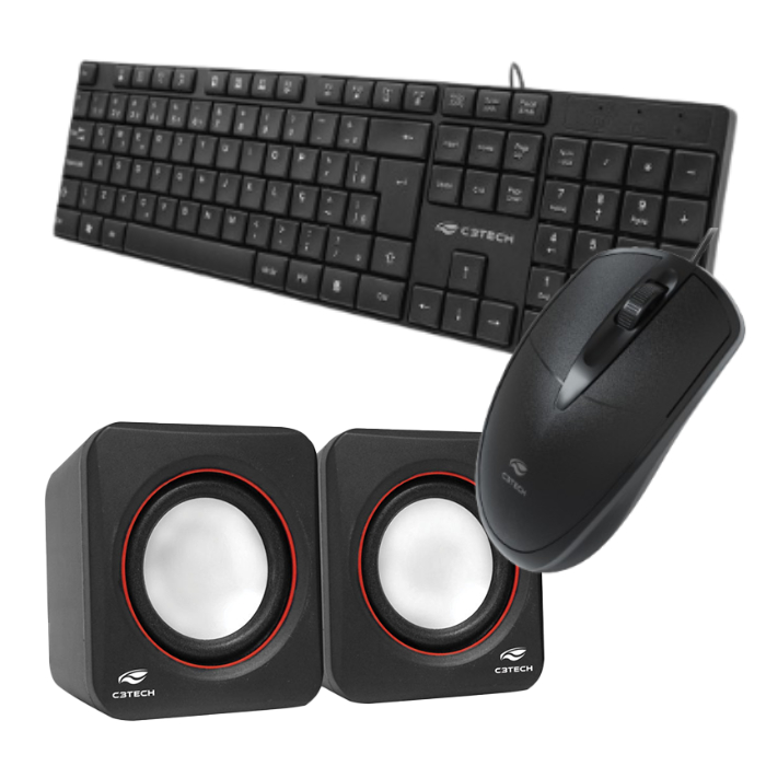 Kit C3 Tech Teclado Multimídia, Mouse com fio e Caixa de Som P2 para PC Notebook Usb Alta Qualidade