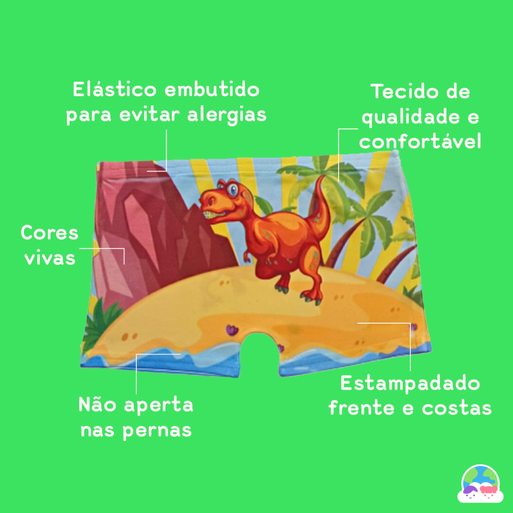 Kit Cueca Box Boxer Infantil Dinossauro Menino Criança Microfibra Masculino