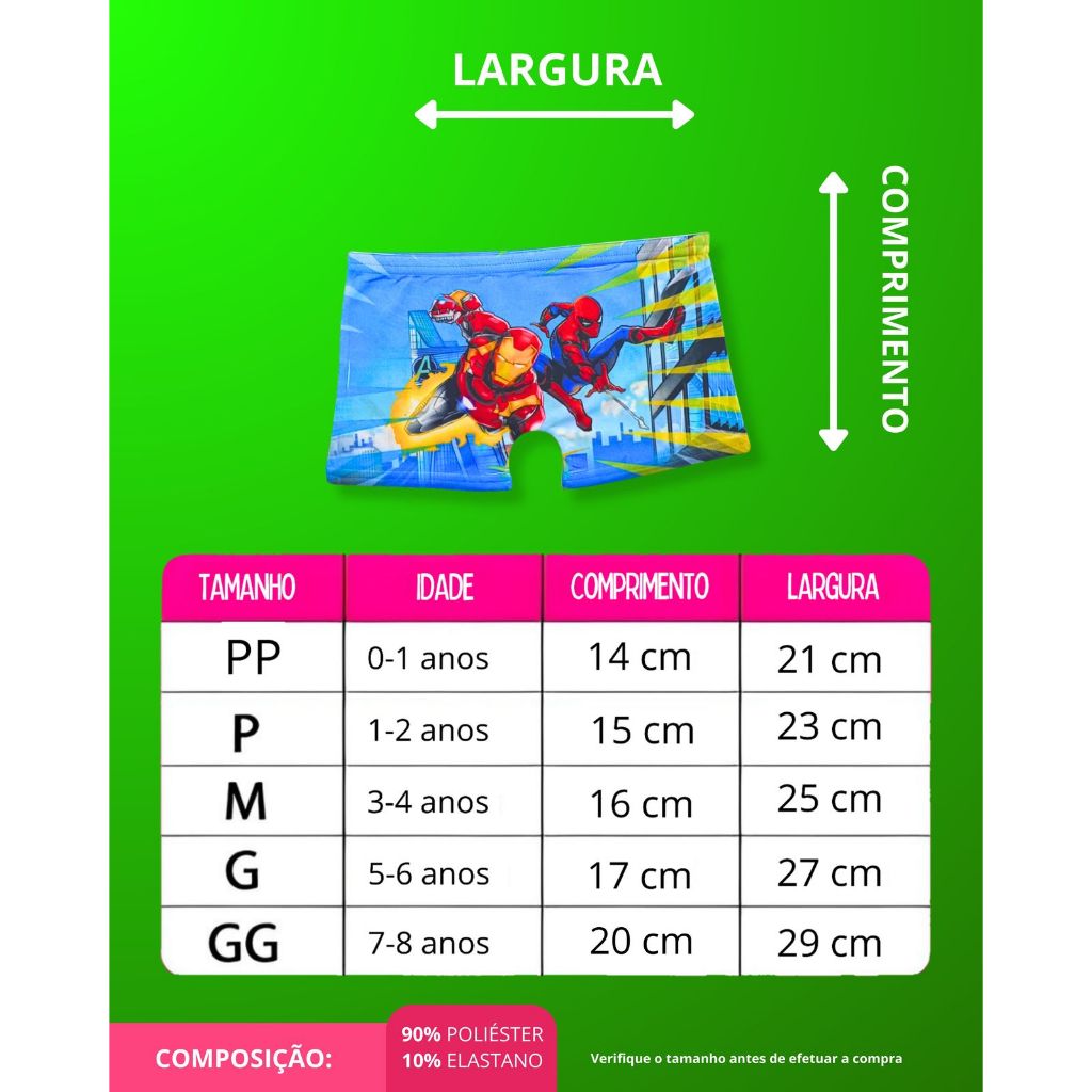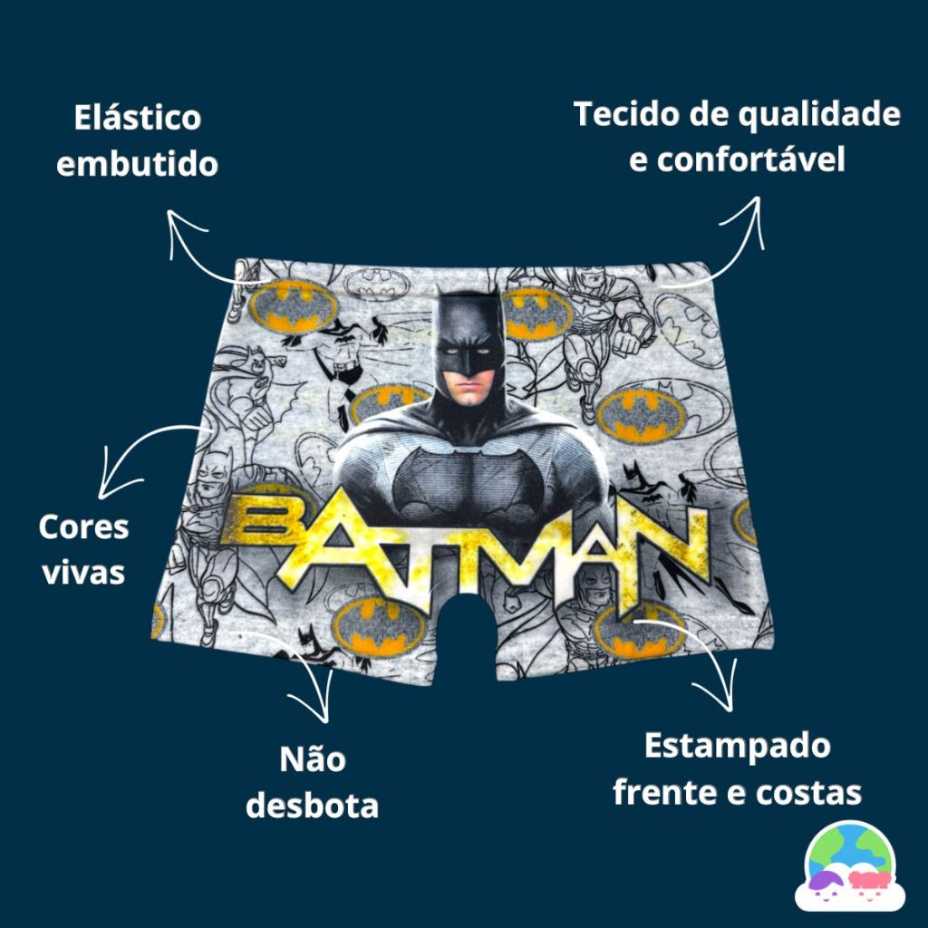 Kit 5 Cueca Box Boxer Infantil Sublimada Personagem Desenho Menino Criança Masculina Microfibra