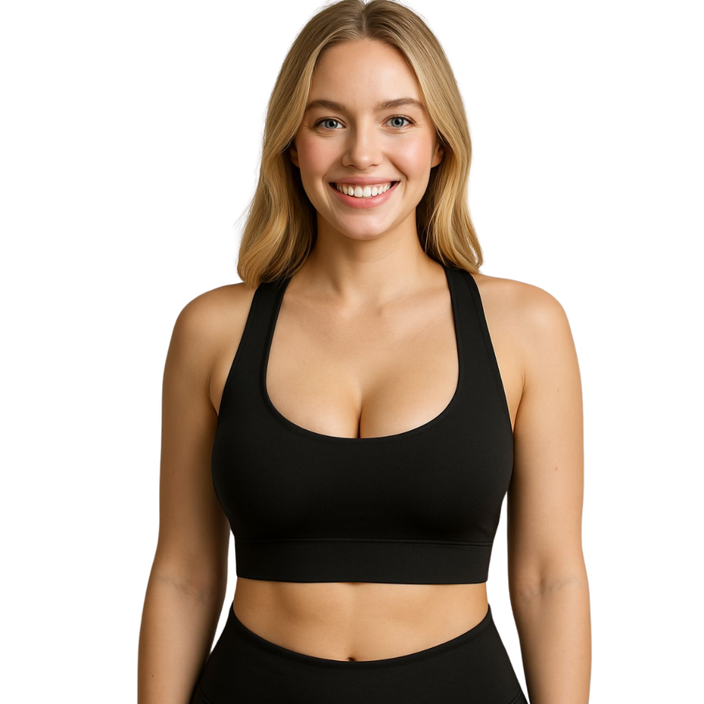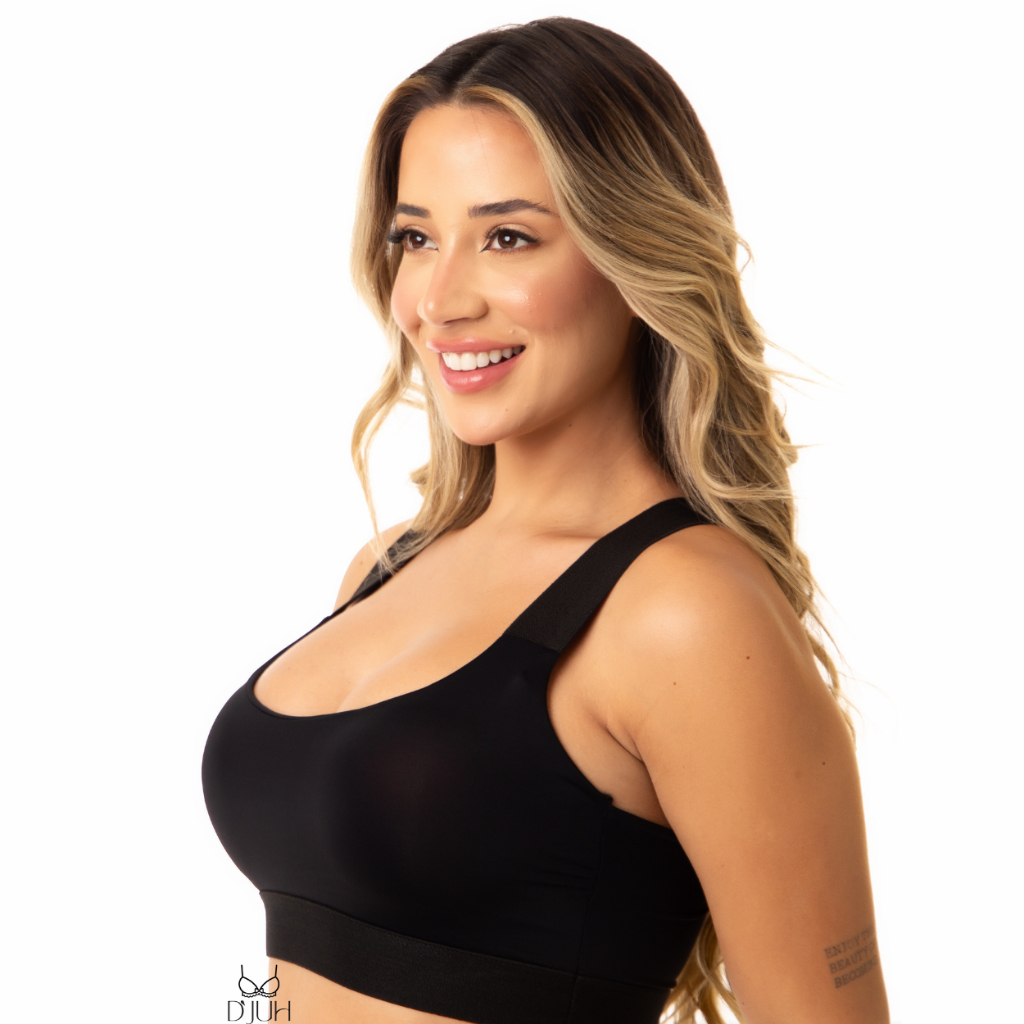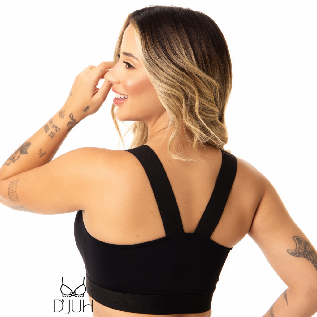 Top Fitness Academia com Bojo Removível e Alças com Elástico Largo Preto Feminino