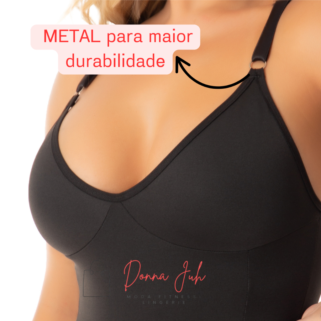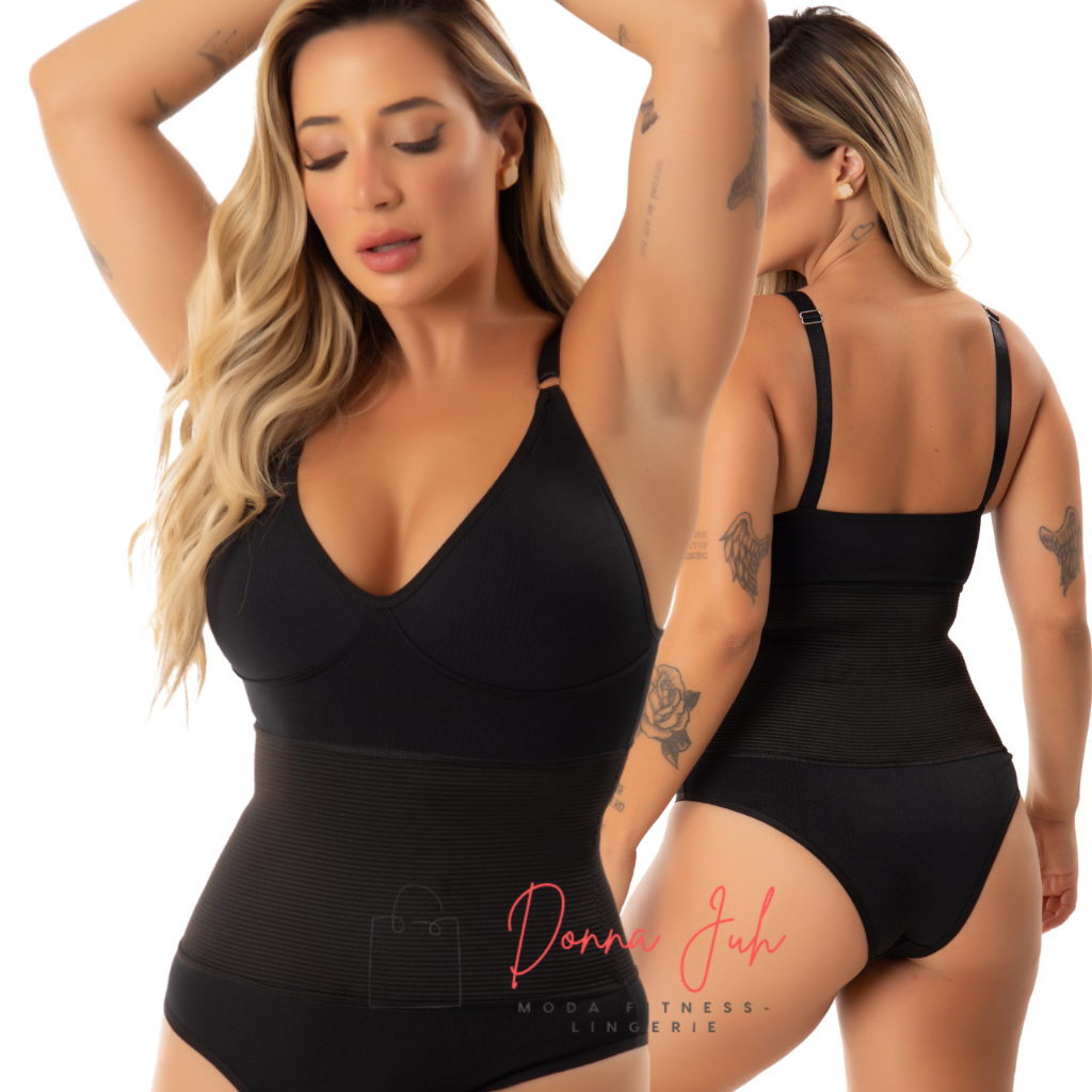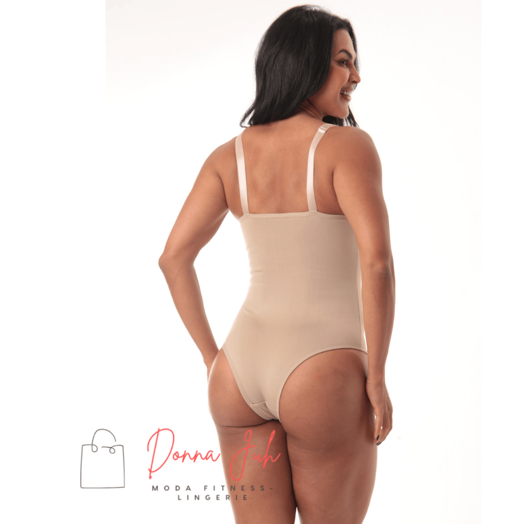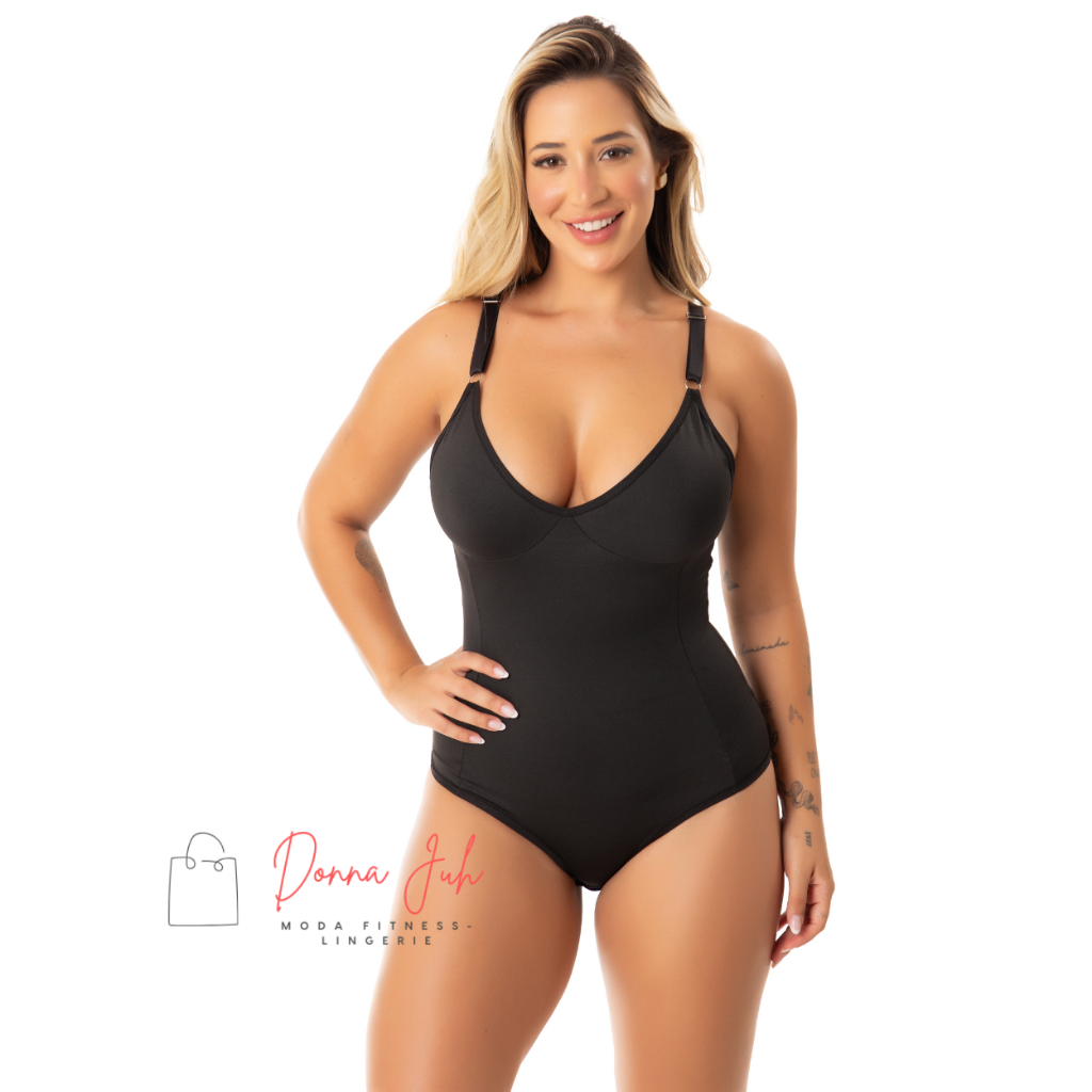 Cinta Body Modelador Compressão Sem Bojo Alças Regulagem Decote Feminino Redutora de Medidas