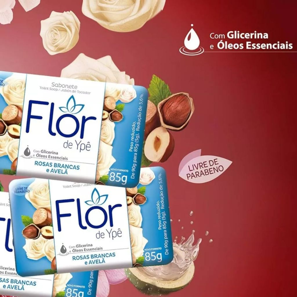 Kit 12un Sabonete Flor De Ypê Rosas Brancas E Avelã 85g