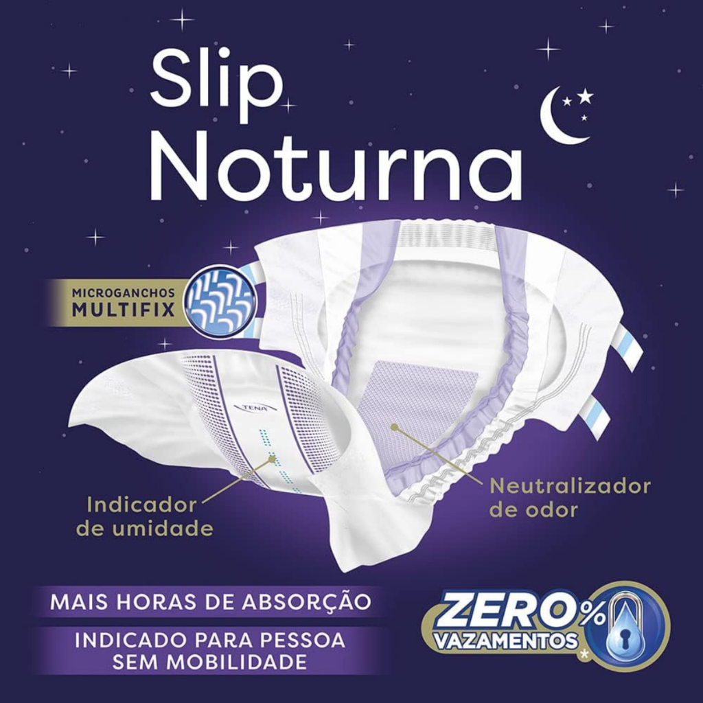 Fralda Geriátrica para Incontinência Urinária Tena Slip Noturna Tamanho M Com 7 Unidades