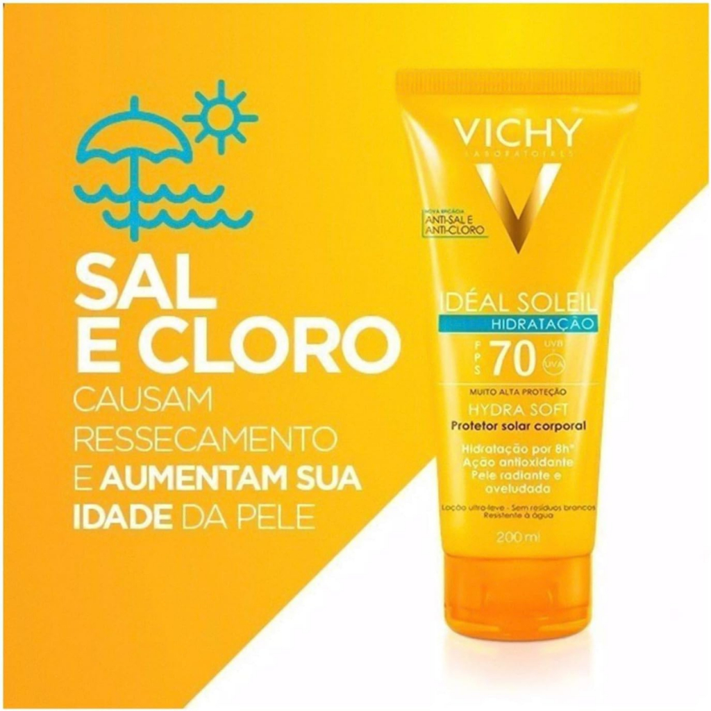 Protetor Solar Corporal Vichy Idéal Soleil Hydra Soft FPS70 Com 200ml