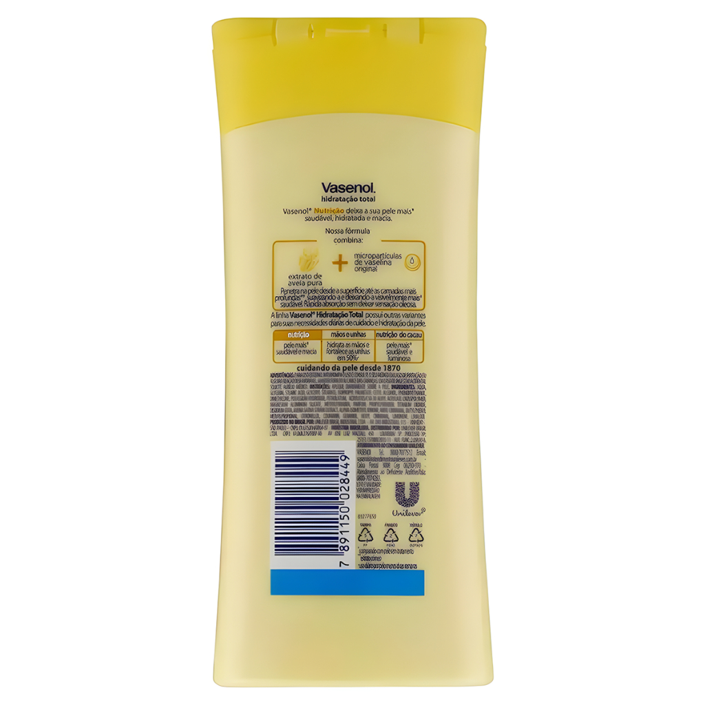 Vasenol Loção Desodorante Hidratação Total Nutrição Aveia Pura Frasco 400ml
