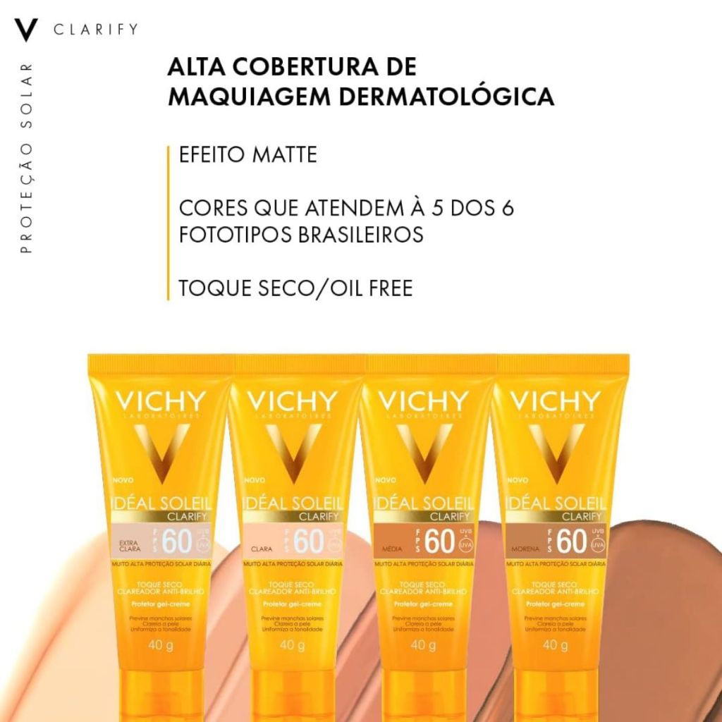 Protetor Solar Vichy Idéal Soleil Clarify FPS60 Cor Média Com 40g