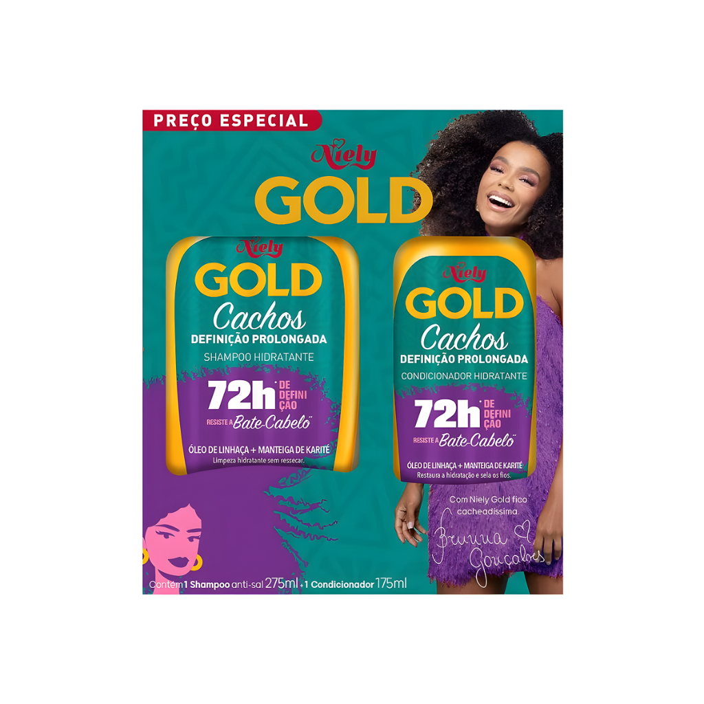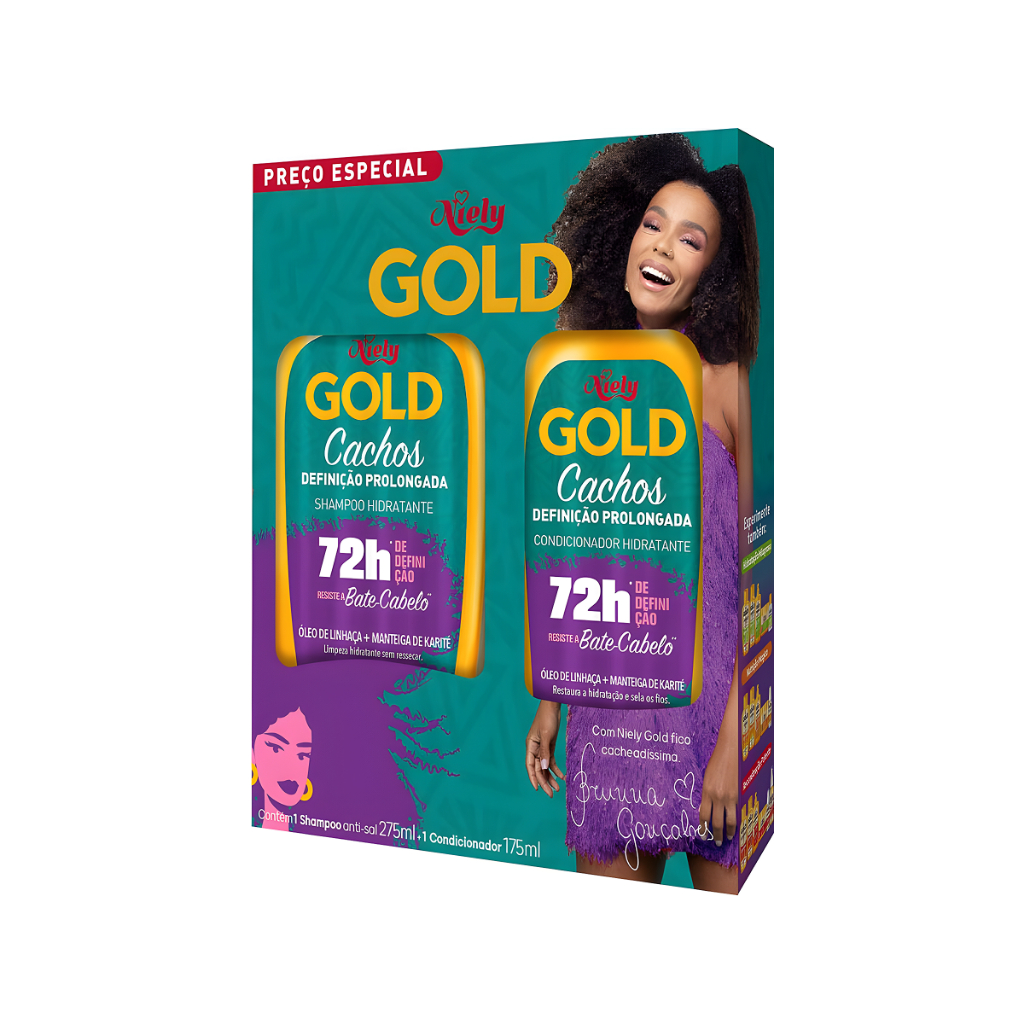 Kit Shampoo 275ml + Condicionador 175ml Niely Gold Cachos Definição