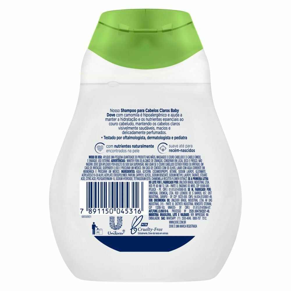 Shampoo Baby Dove Cabelos Claro Hidratação Enriquecida 200ml