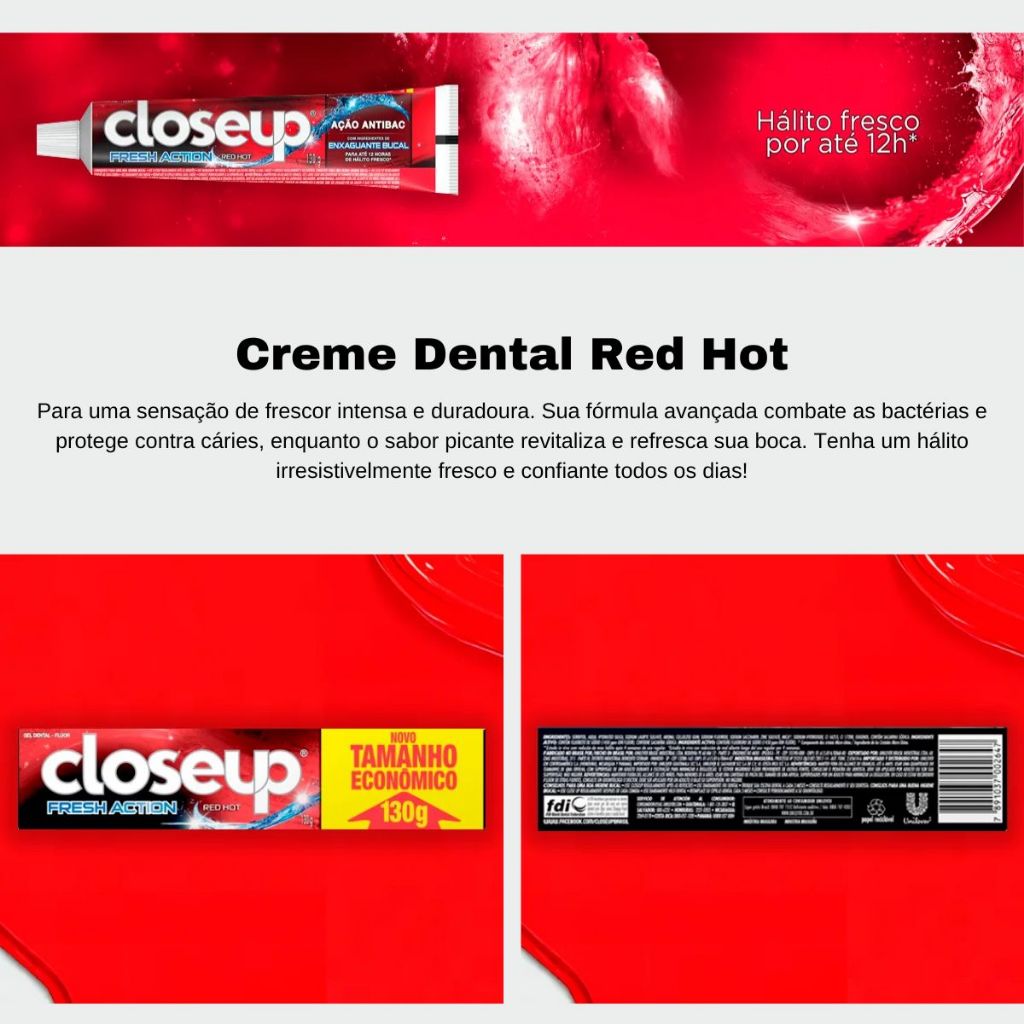 Kit 2un Creme Dental Closeup Fresh Action Red Hot Em Gel 130g