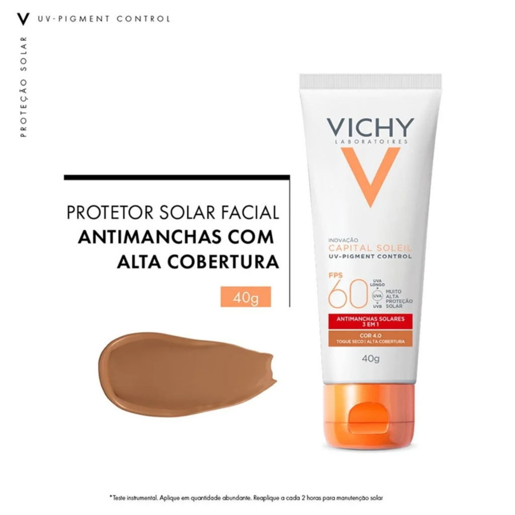 Protetor Solar Facial Vichy Capital Soleil UV-Pigment Control FPS60 Cor 4.0 Com 40g