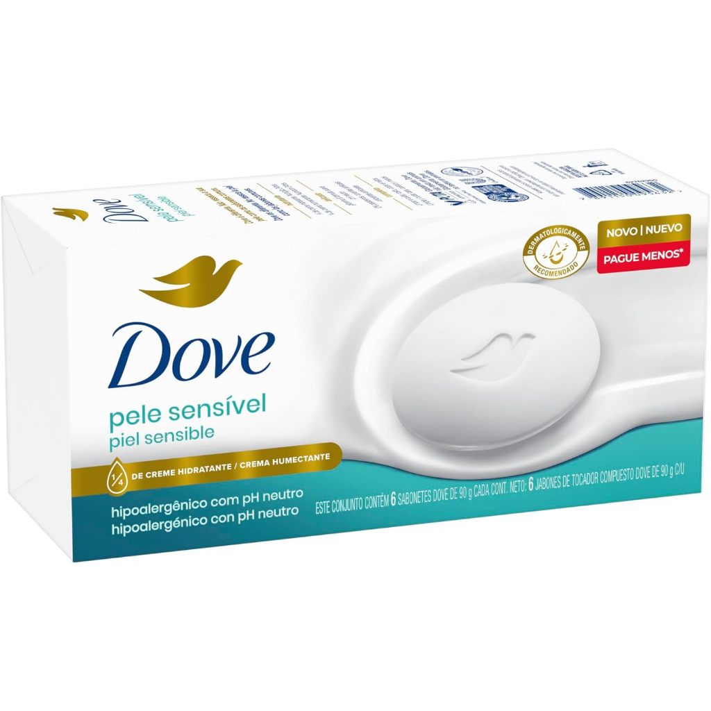 Pack Sabonete Em Barra Dove Pele Sensível Hipoalergênico Com 6 Unidades De 90g