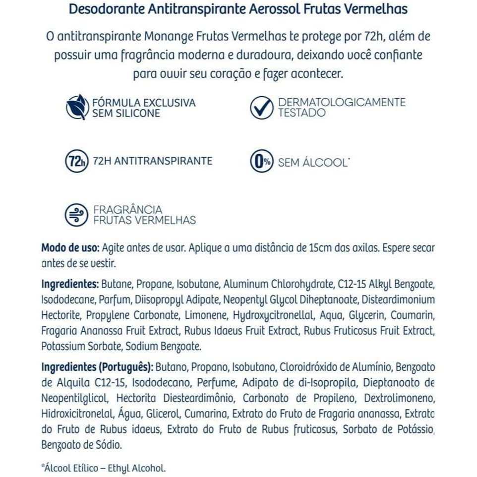 Desodorante Antitranspirante Monange Aerossol Frutas Vermelhas Com 150ml
