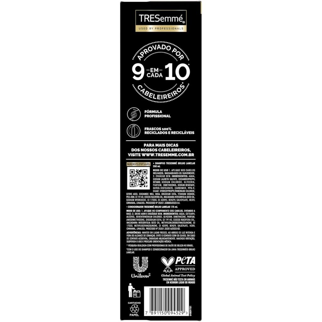 Kit Shampoo 350ml + Condicionador 175ml Tresemmé Brilho Lamelar
