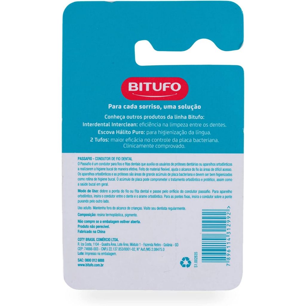 Passa Fio Bitufo Condutor De Fio Dental Com 30un