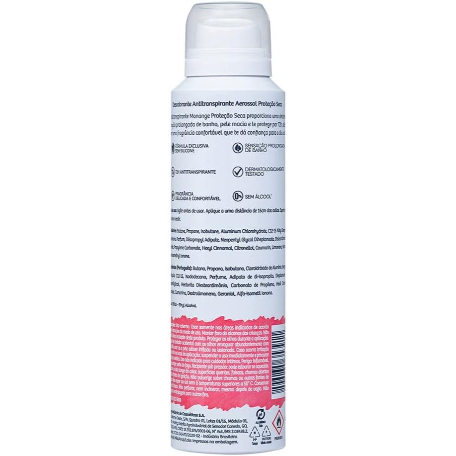 Desodorante Antitranspirante Monange Aerossol Proteção Seca Com 150ml