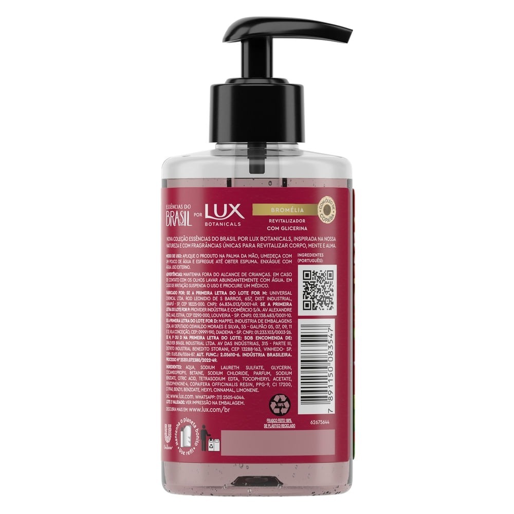 Sabonete Líquido Lux Glicerina Bromélia Mãos 300ml