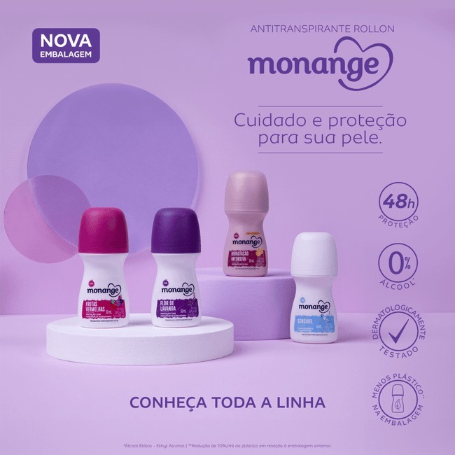 Desodorante Antitranspirante Monange Roll-on Flor Lavanda Com 50ml