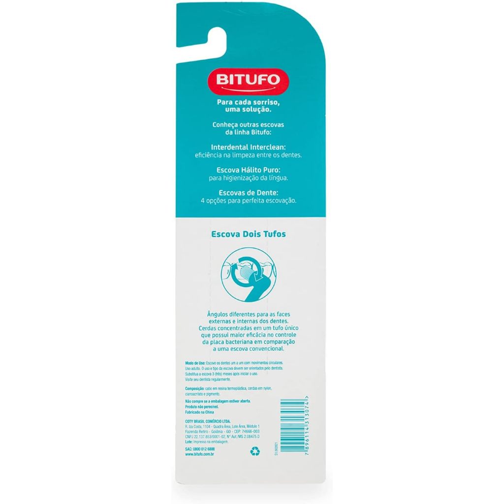 Escova Dental Bitufo Dois Tufos Extra Macia com 1 unidade + 2 protetores de Cerdas