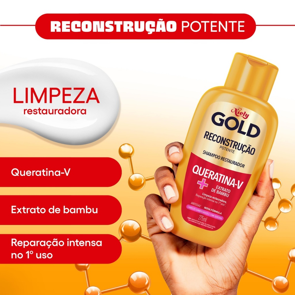 Shampoo Niely Gold Reconstrução Potente Com 275ml