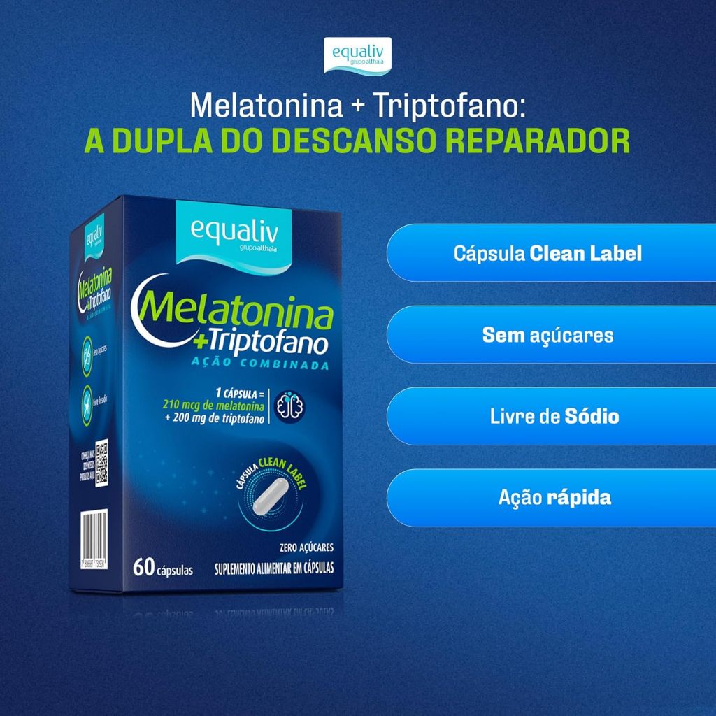 Suplemento Alimentar Equaliv Melatonina+Triptofano Com 60 Cápsulas