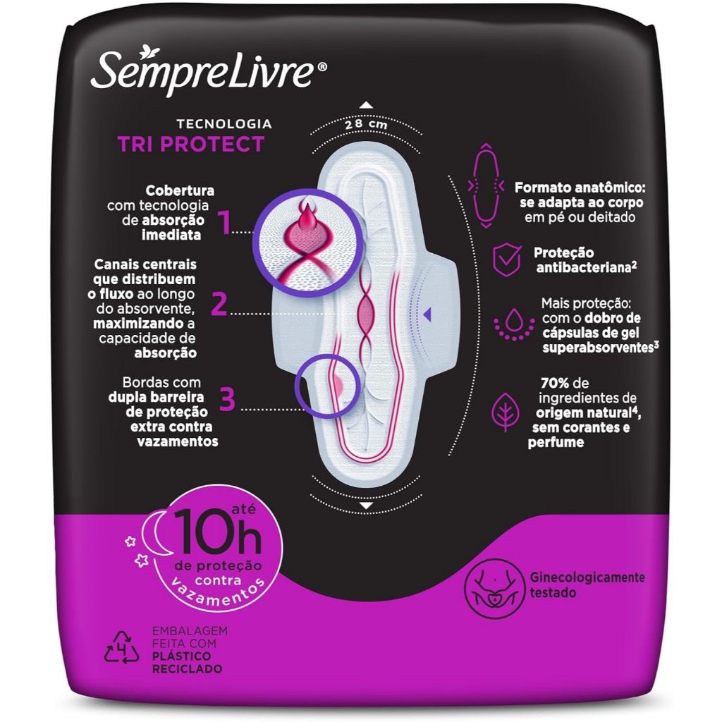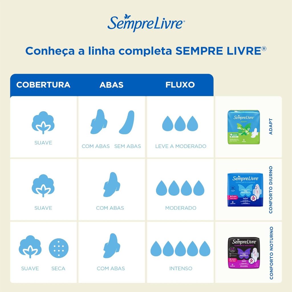 Absorvente Sempre Livre Adapt Noite e Dia Seca com Abas 8 Unidades