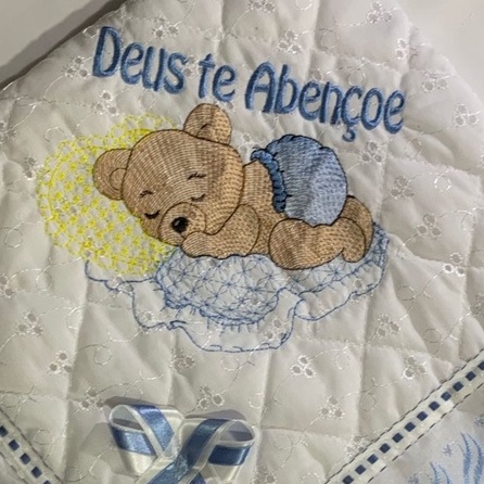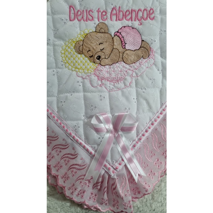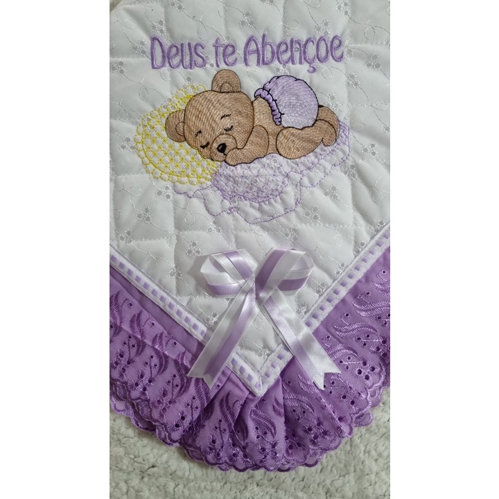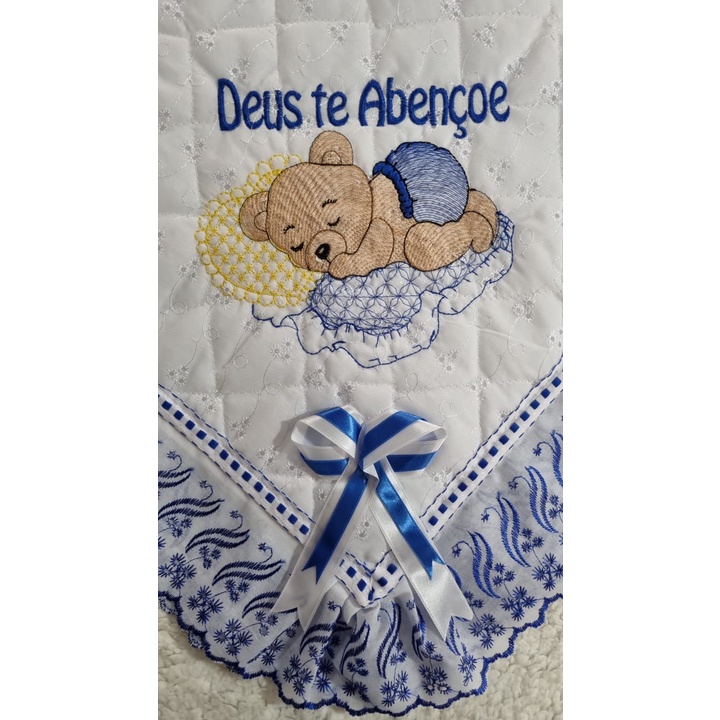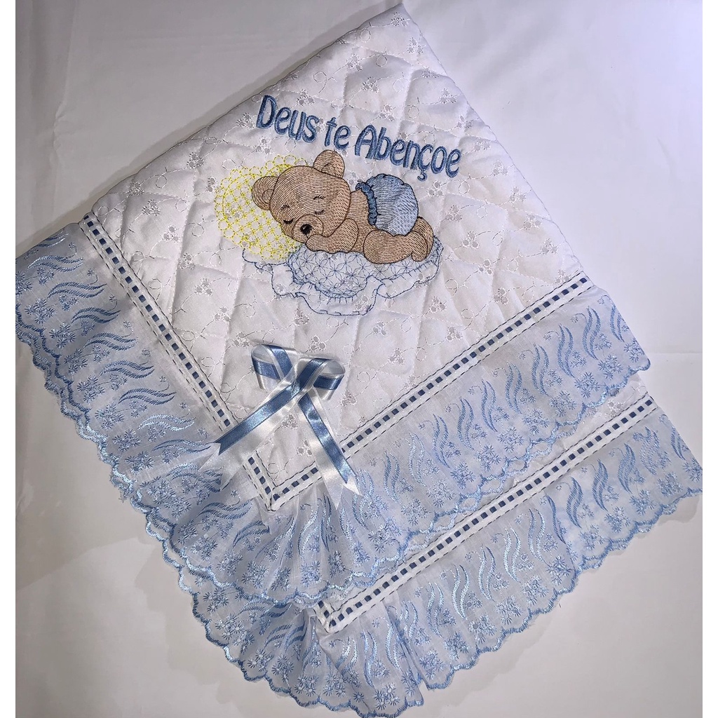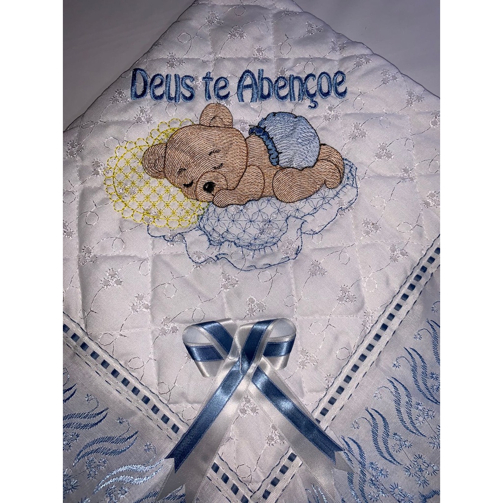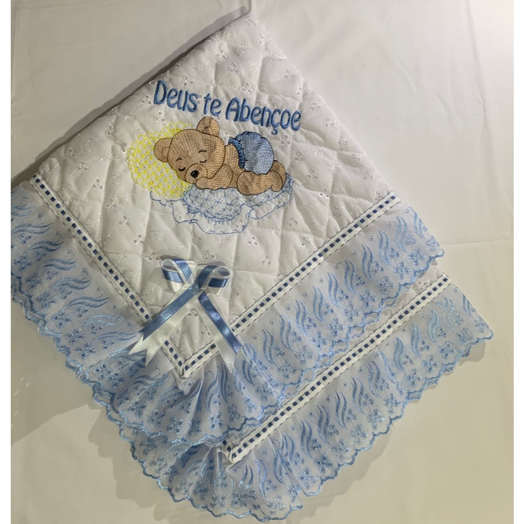 Manta De Lese Bordada e Forrada Urso Dorminhoco Infantil Menino Menina