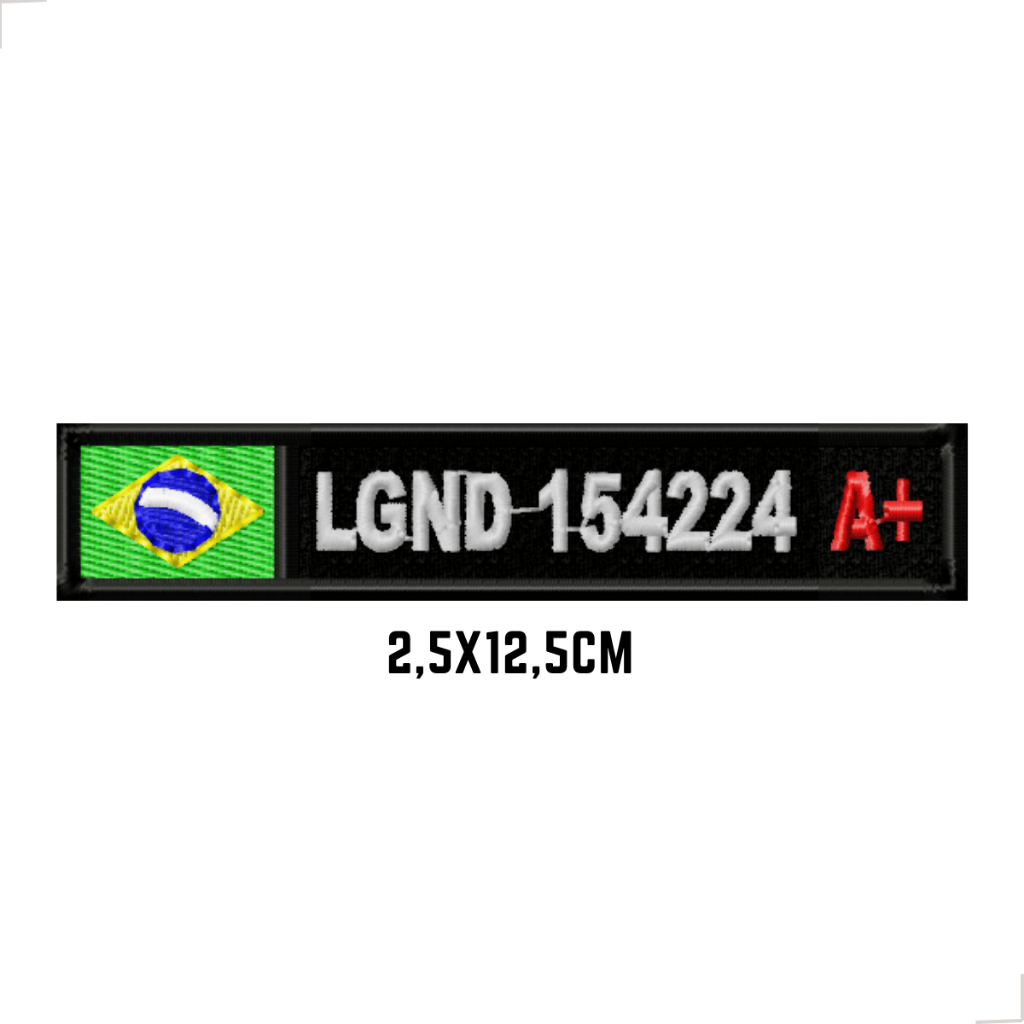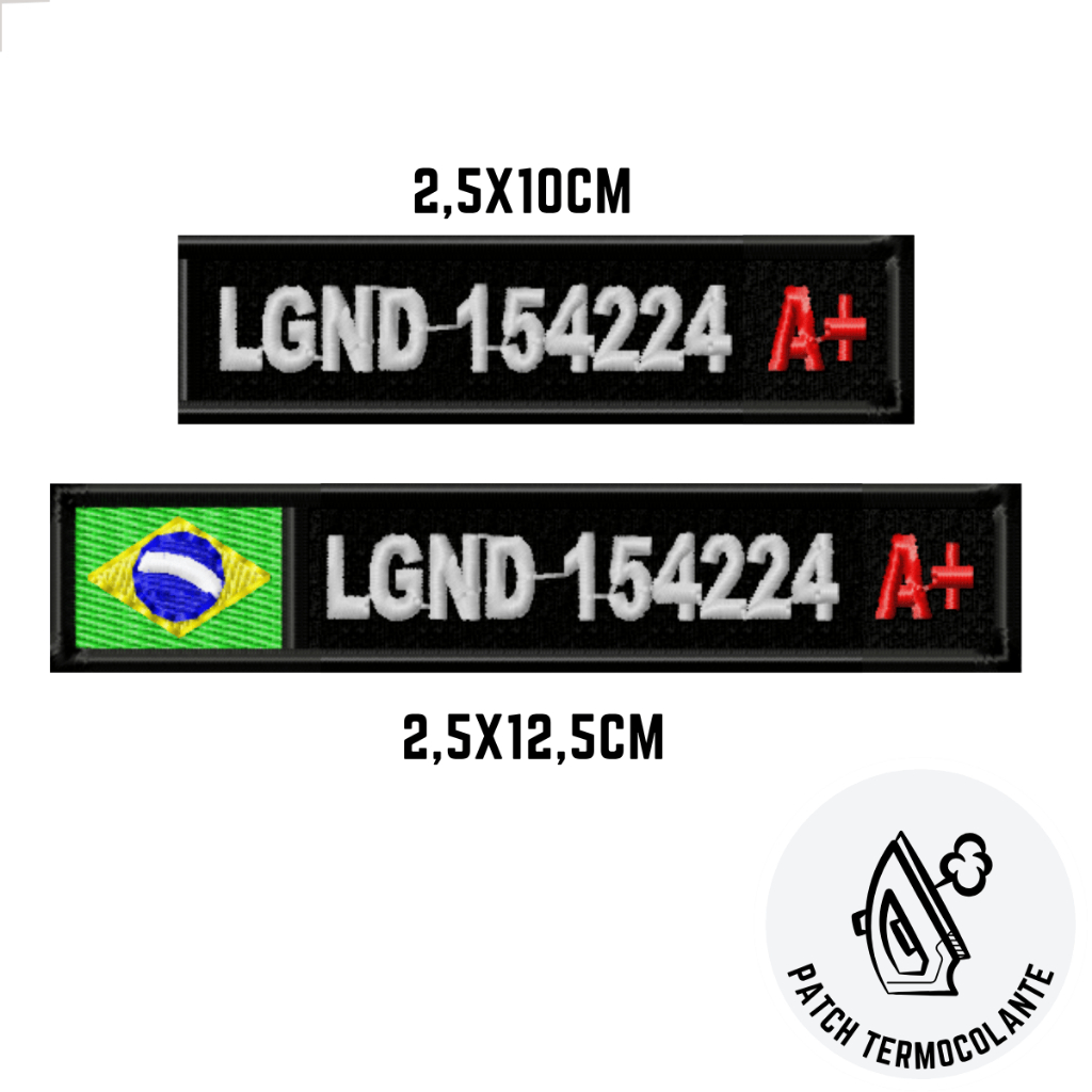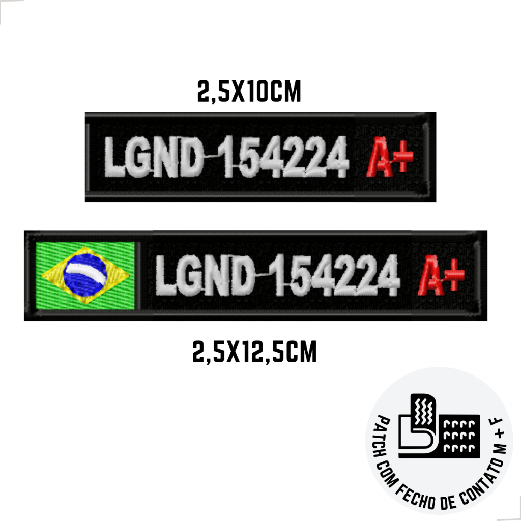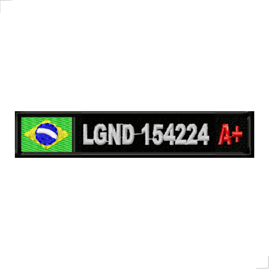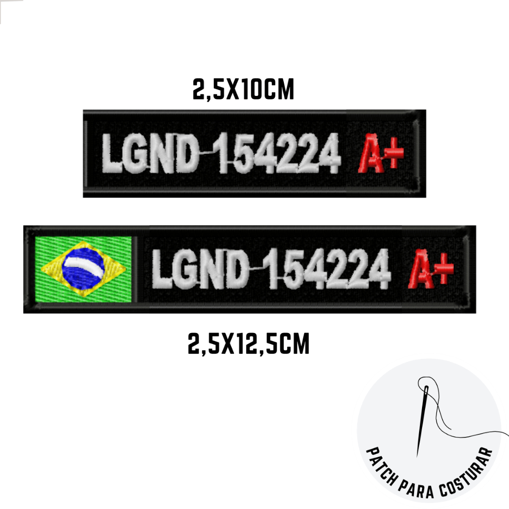 Patch Bordado Tag Tarja Identificação com Nome e Tipo Sanguíneo, Fixação: Costura, Termocolante ou Fecho de Contato